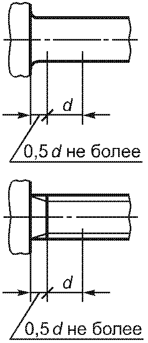 3.1.4.6. Диаметр стержня ![]() Рисунок 22 | h13 | h14 | +/- IT15 | Допуск не применяют в областях скругления под головкой и сбега резьбы | |||