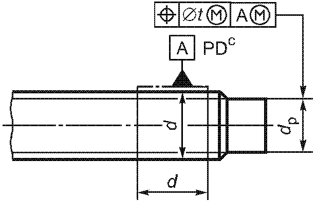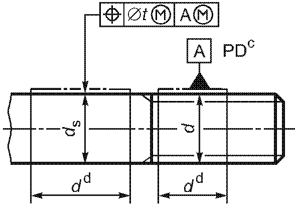 -------------------------------- <c> Буквы PD означают, что допуск относится к оси цилиндра, диаметр которого равен среднему диаметру резьбы. | ||||||