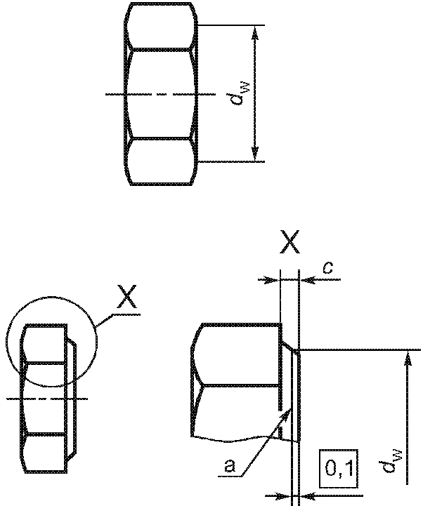 3.1.4.3. Диаметр опорной поверхности и высота опорной шайбы ![]() -------------------------------- <a> Базовая плоскость для Рисунок 16 | , если размер под ключ < 21 мм; , если размер под ключ >= 21 мм;![]() | Для изделий класса C наличие опорной шайбы необязательно | |||||