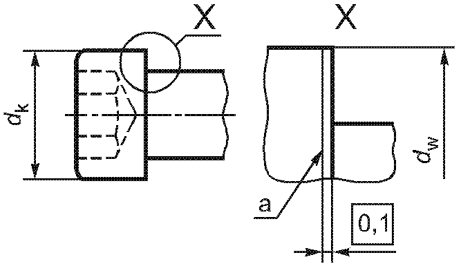 <c> Соосность крестообразного шлица следует проверять с помощью наконечника калибра для измерения глубины шлица в соответствии с ИСО 4757. | ||||||
