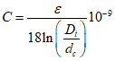 C - емкость изолированной жилы, Ф/м;