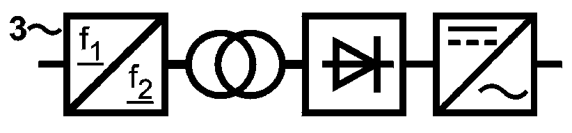 | Трехфазный трансформатор-выпрямитель | Для отображения символа источника сварочного тока на табличке с паспортными характеристиками |