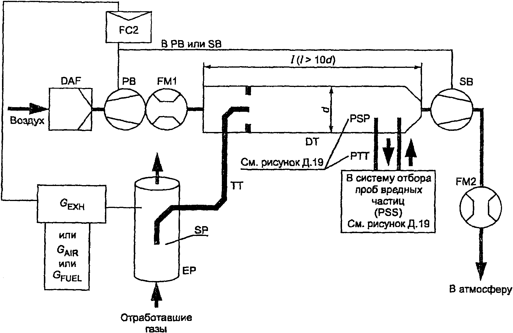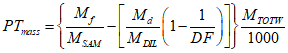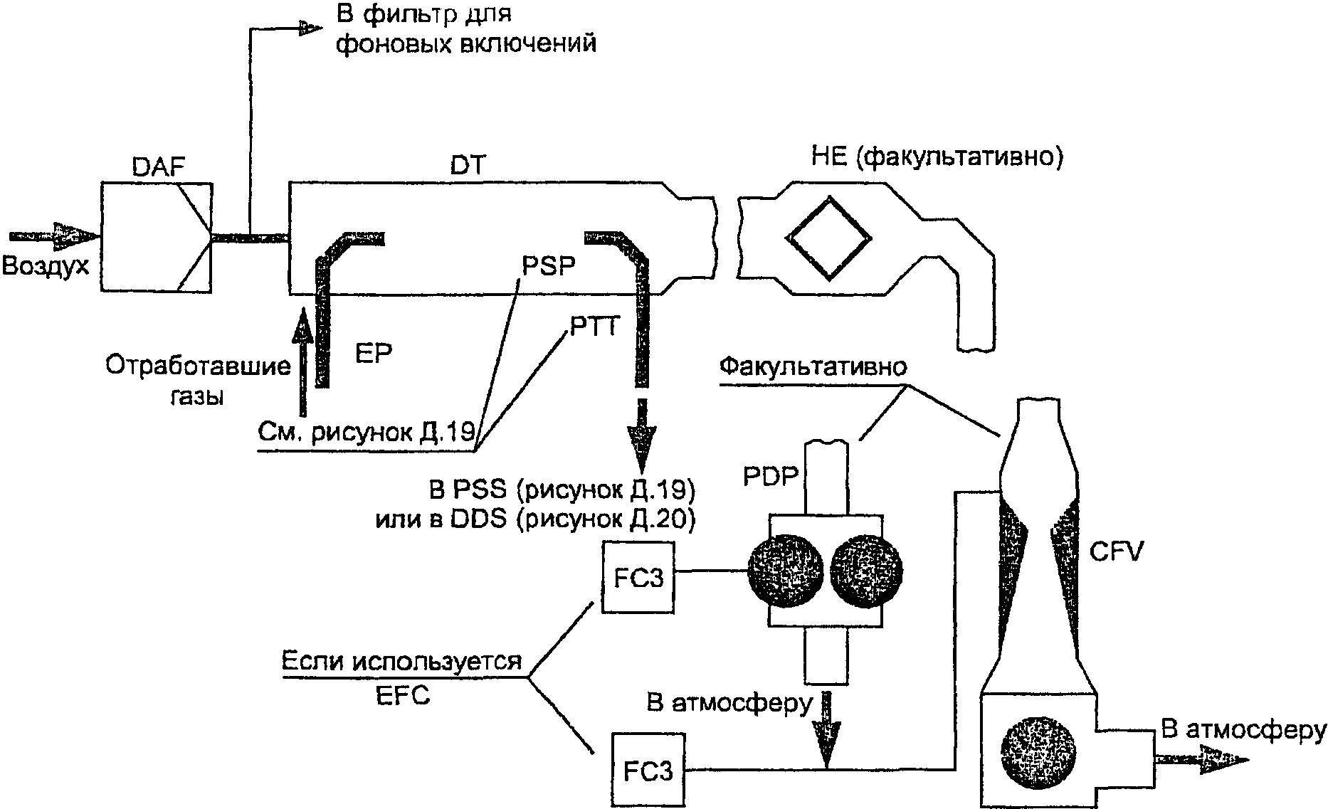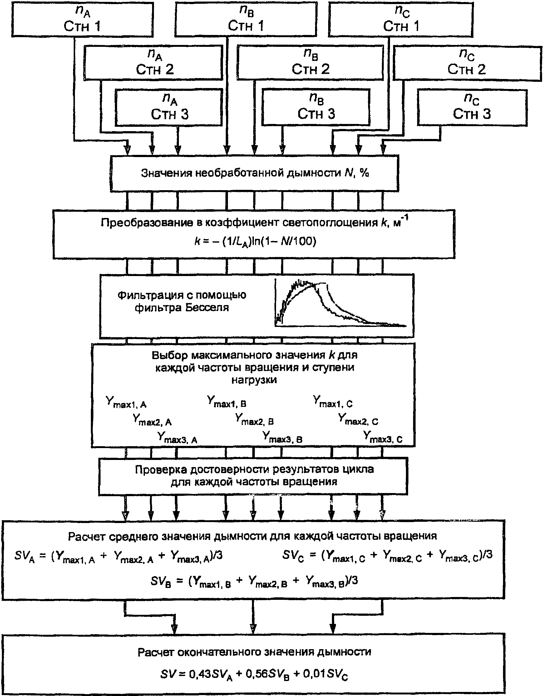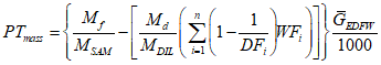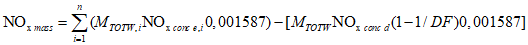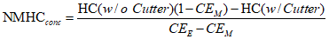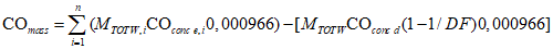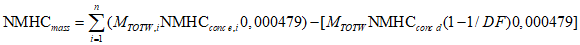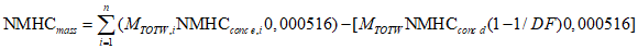 Для систем без теплообменника массу выбросов вредных веществ в граммах за цикл определяют расчетом мгновенных значений масс выбросов и интегрированием мгновенных значений за цикл. Кроме того, выполняют фоновую коррекцию непосредственно по мгновенным значениям концентрации. Вычисления проводят по следующим формулам: