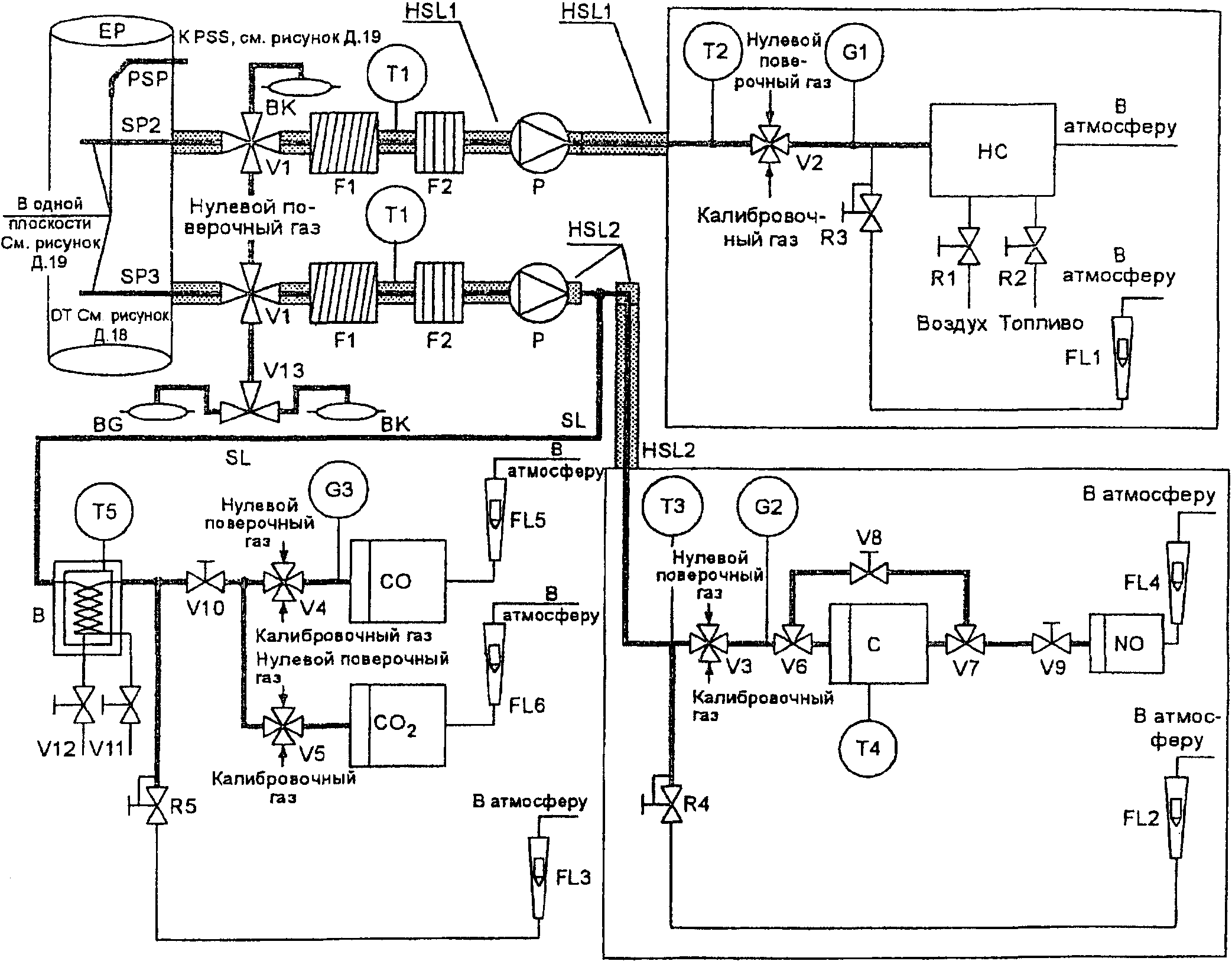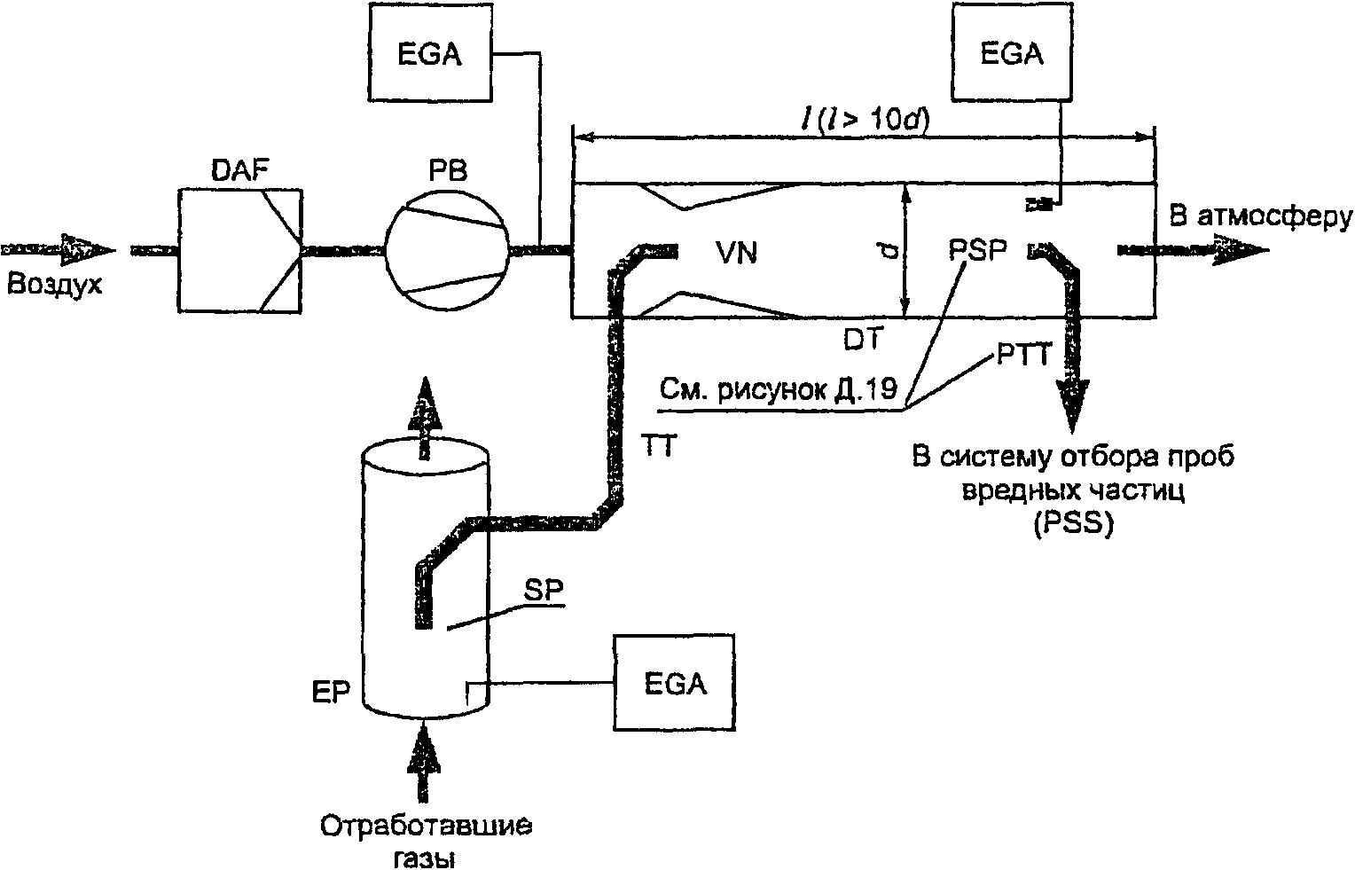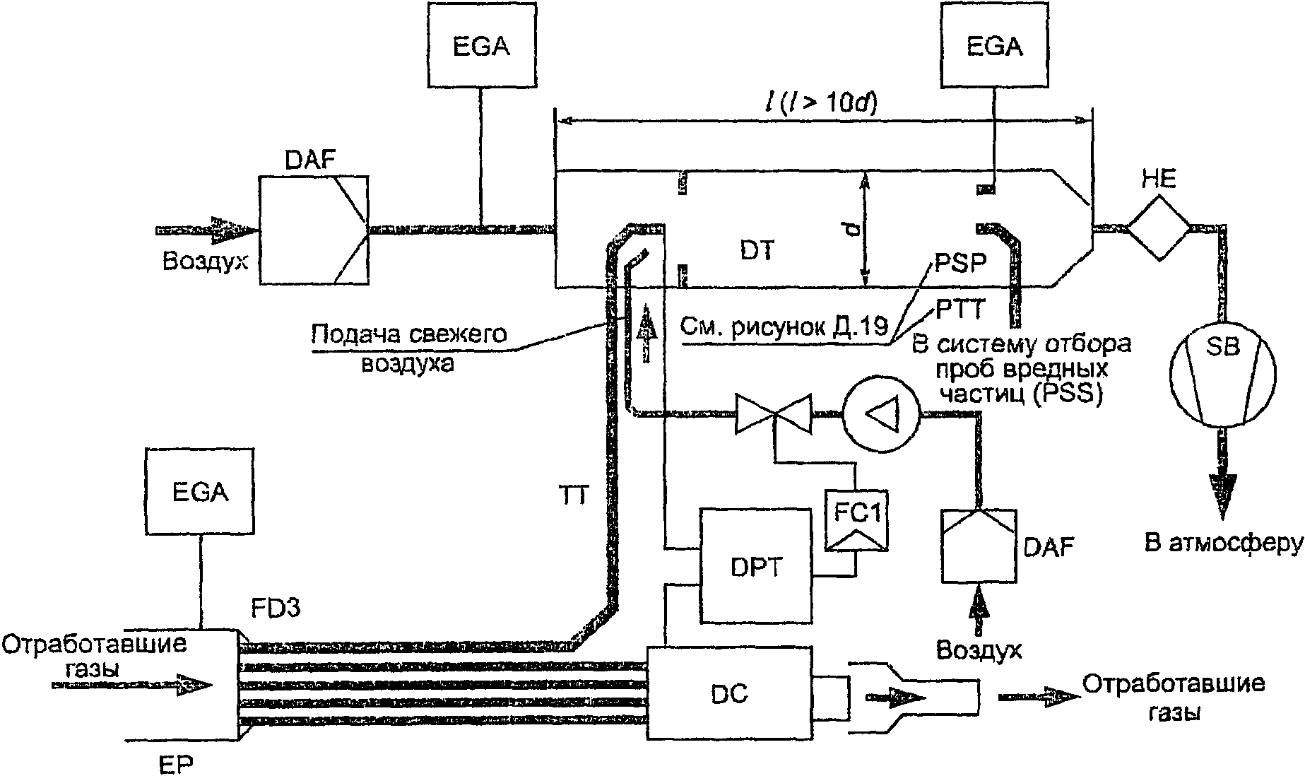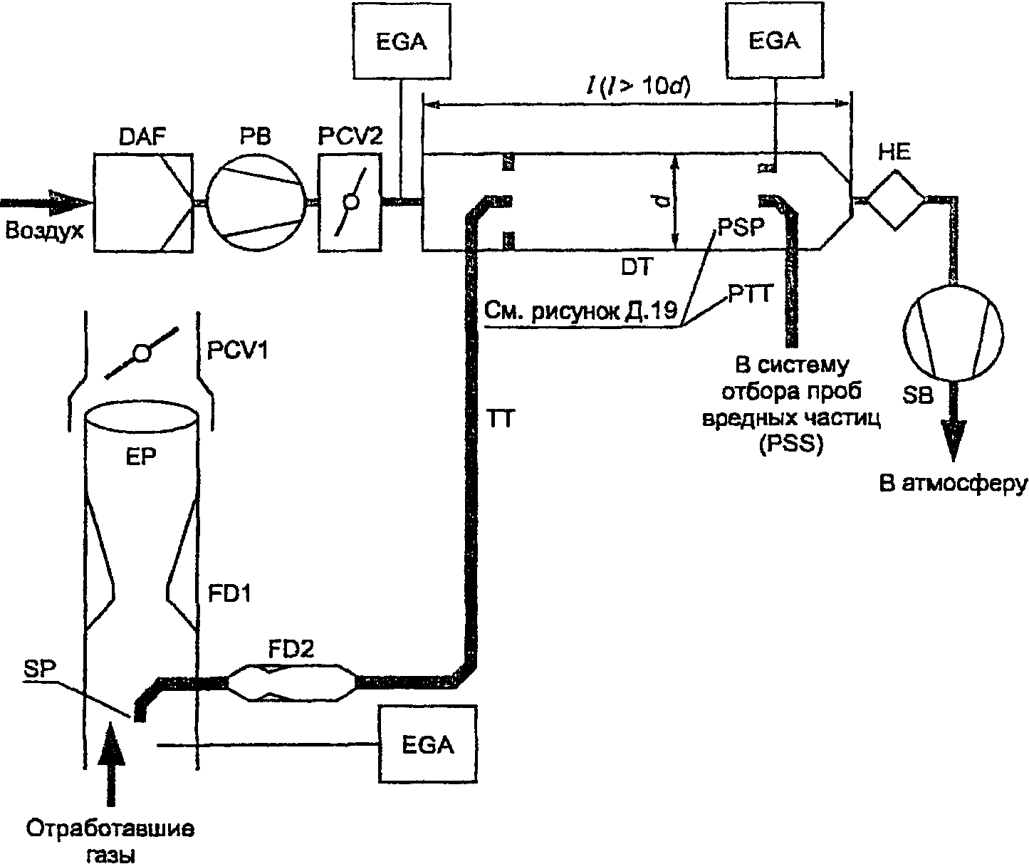 Для систем без теплообменника массу выбросов вредных веществ в граммах за цикл определяют расчетом мгновенных значений масс выбросов и интегрированием мгновенных значений за цикл. Кроме того, выполняют фоновую коррекцию непосредственно по мгновенным значениям концентрации. Вычисления проводят по следующим формулам: