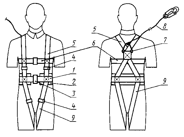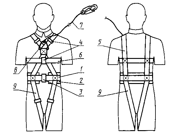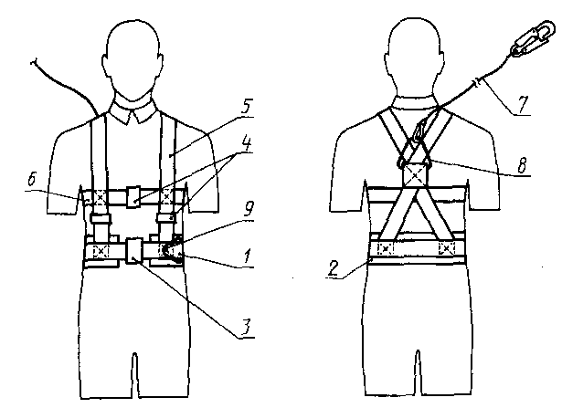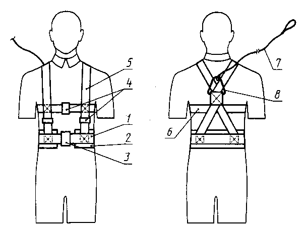 5 - пояс лямочный; 6 - строп; 7 - штанга;