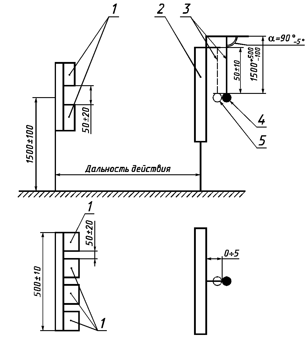 <1> Расстояние измеряют от рабочего центра излучателя до места расположения чувствительного элемента извещателя.