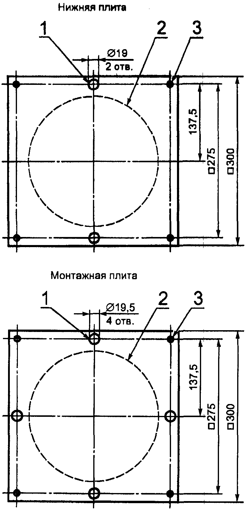 1 - крепежное отверстие; 2 - отверстие для монтажа