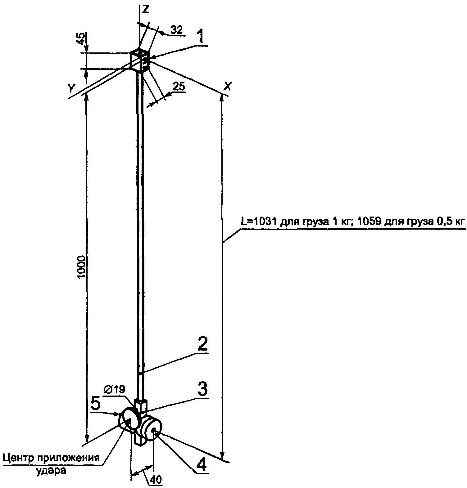 длина 120 мм); 4 - набор грузов; 5 - ударный диск