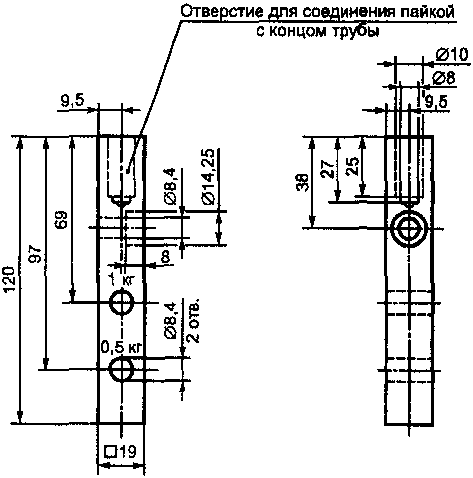 толщина стенки 1 мм); 3 - стальной брус (квадрат 19 x 19 мм,