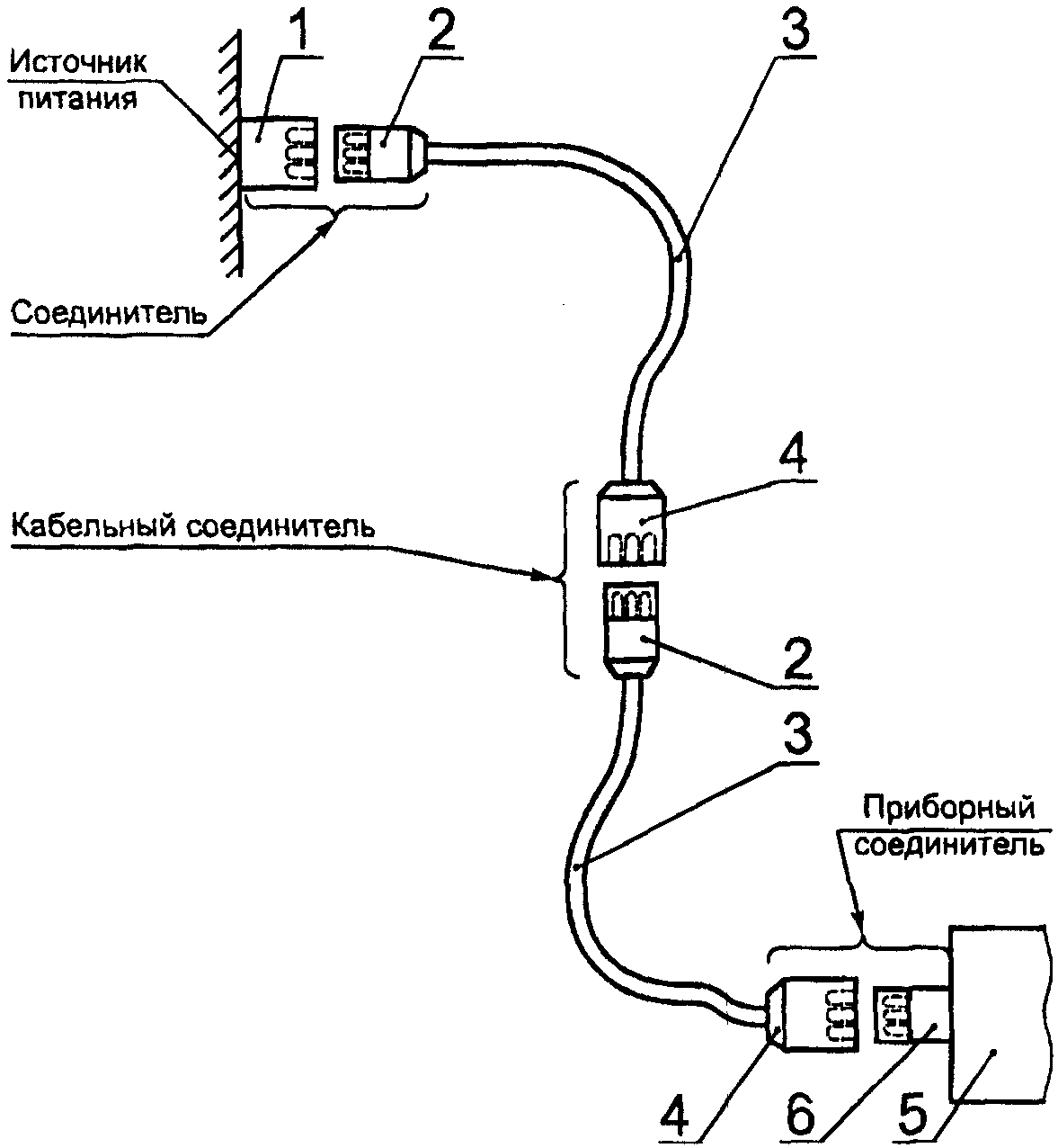 3.2. Кабельный соединитель: устройство, обеспечивающее соединение двух гибких кабелей. Состоит из розетки и вилки.
