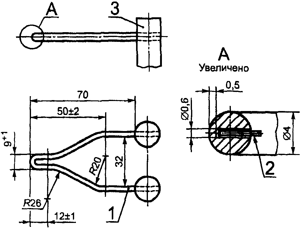 1 - алюминиевая опора; 2 - стальная труба (диаметр 10 мм,