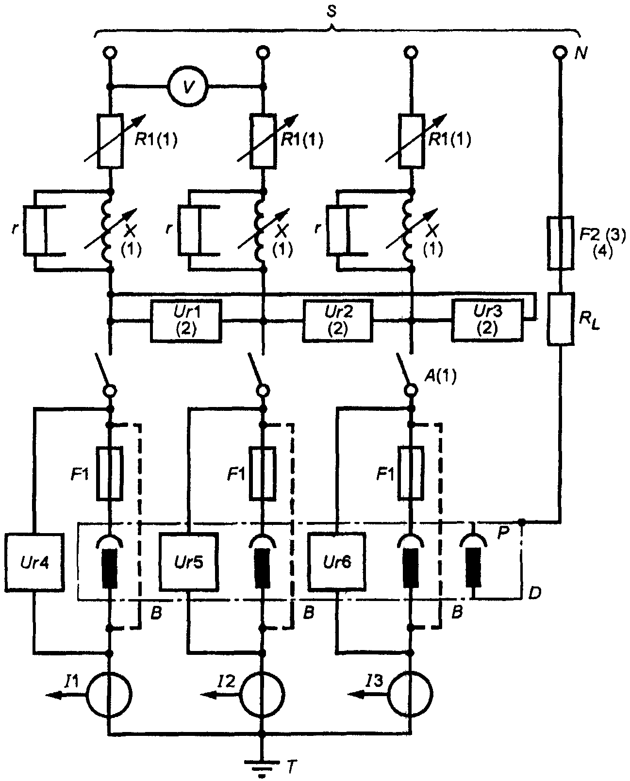 сопротивление; N - нейтраль (искусственная нейтраль);