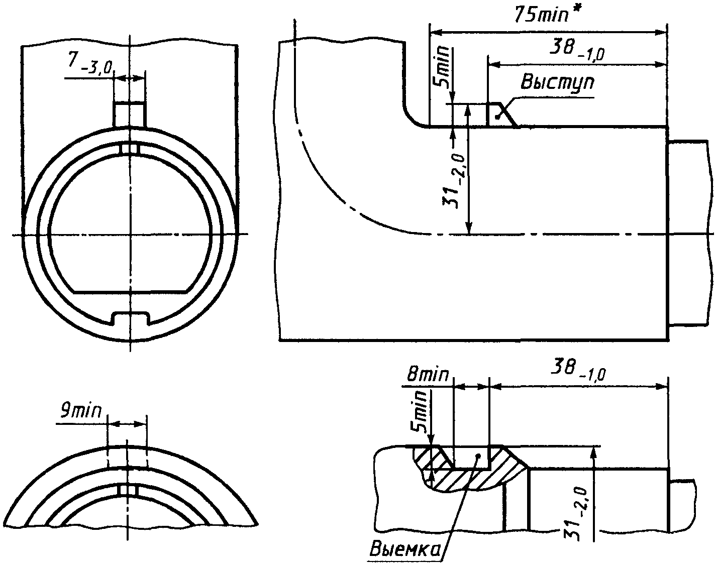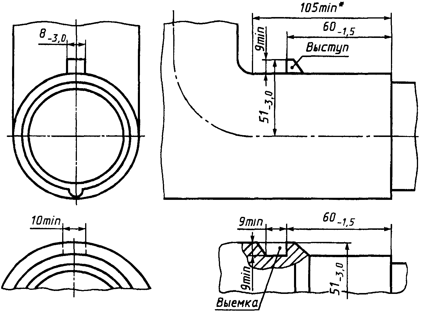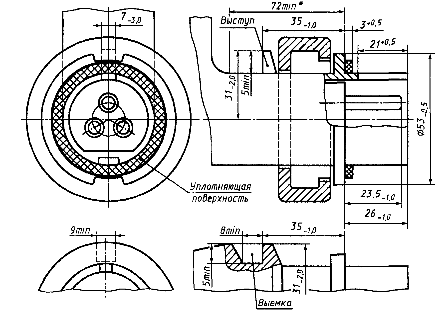 Форма сечения канала для проводника может отличаться от показанной на рисунках, при условии, что в него можно вписать окружность диаметром, равным минимальному значению D.