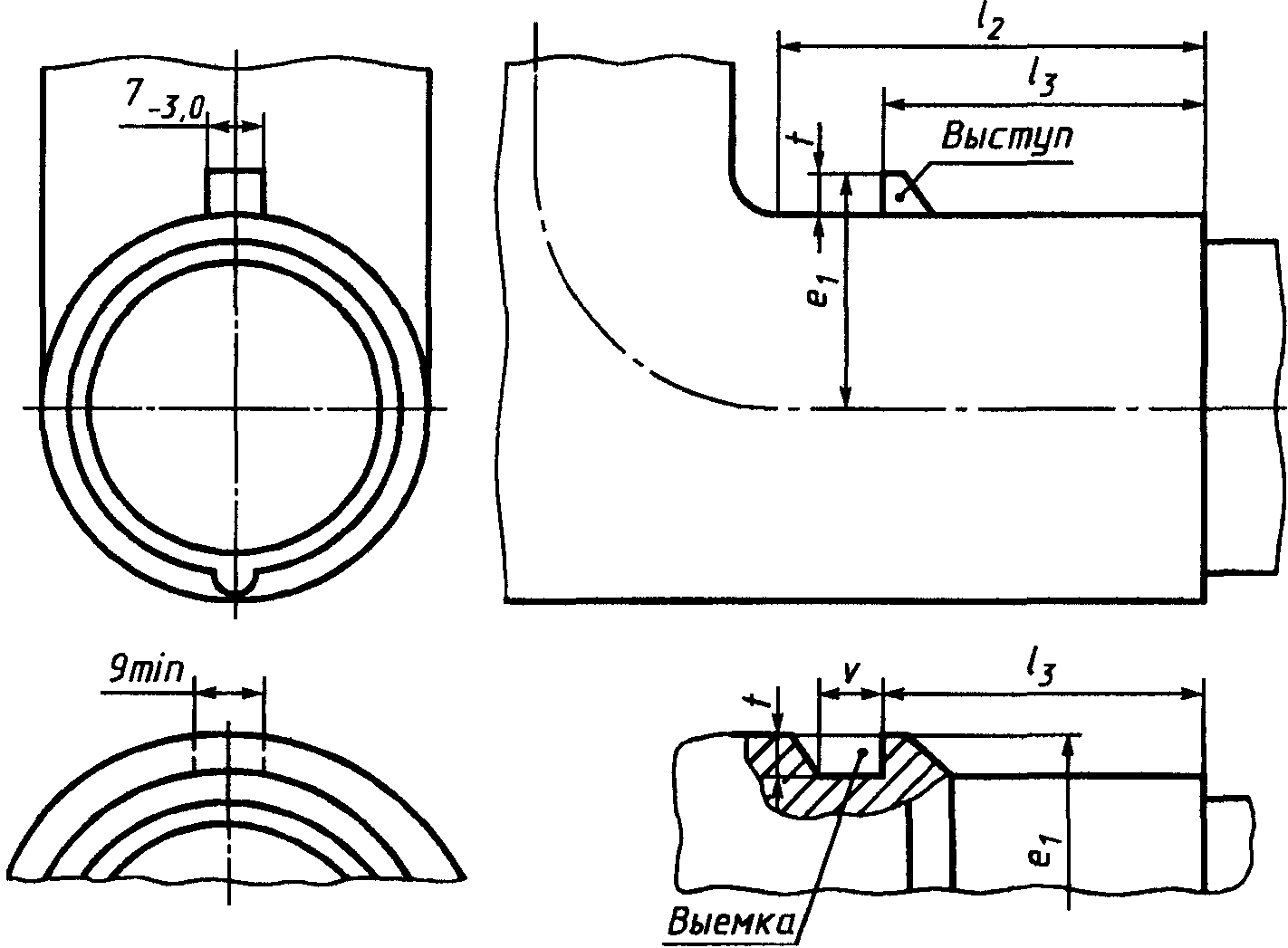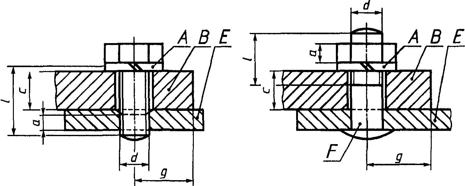 Если нерезьбовая часть винта или болта меньше толщины равноценного устройства, тогда указанное минимальное значение длины резьбы винта или болта соответственно увеличивают.