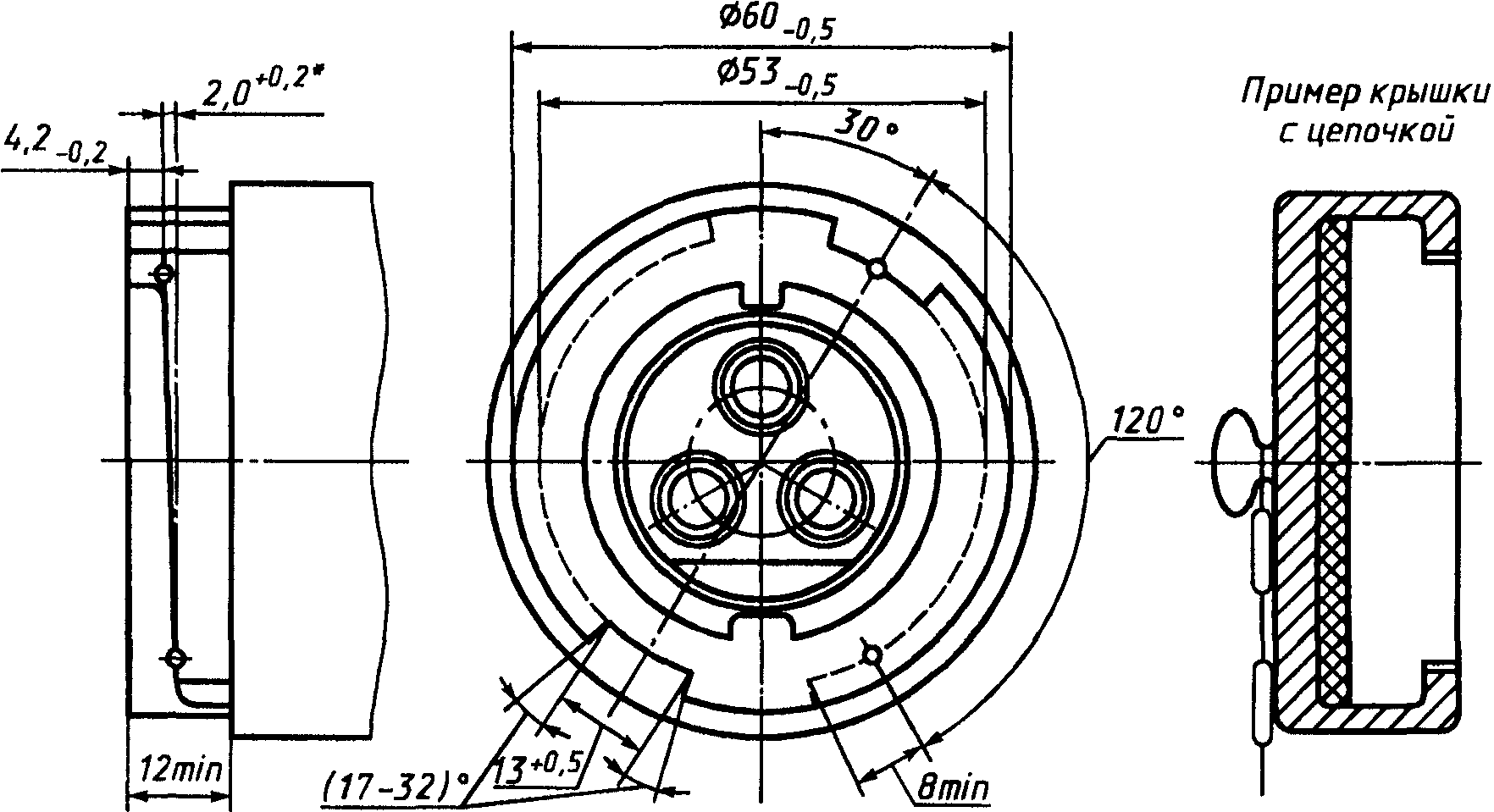 Не должно быть возможным введение в соответствующий калибр вилки или вводного устройства.