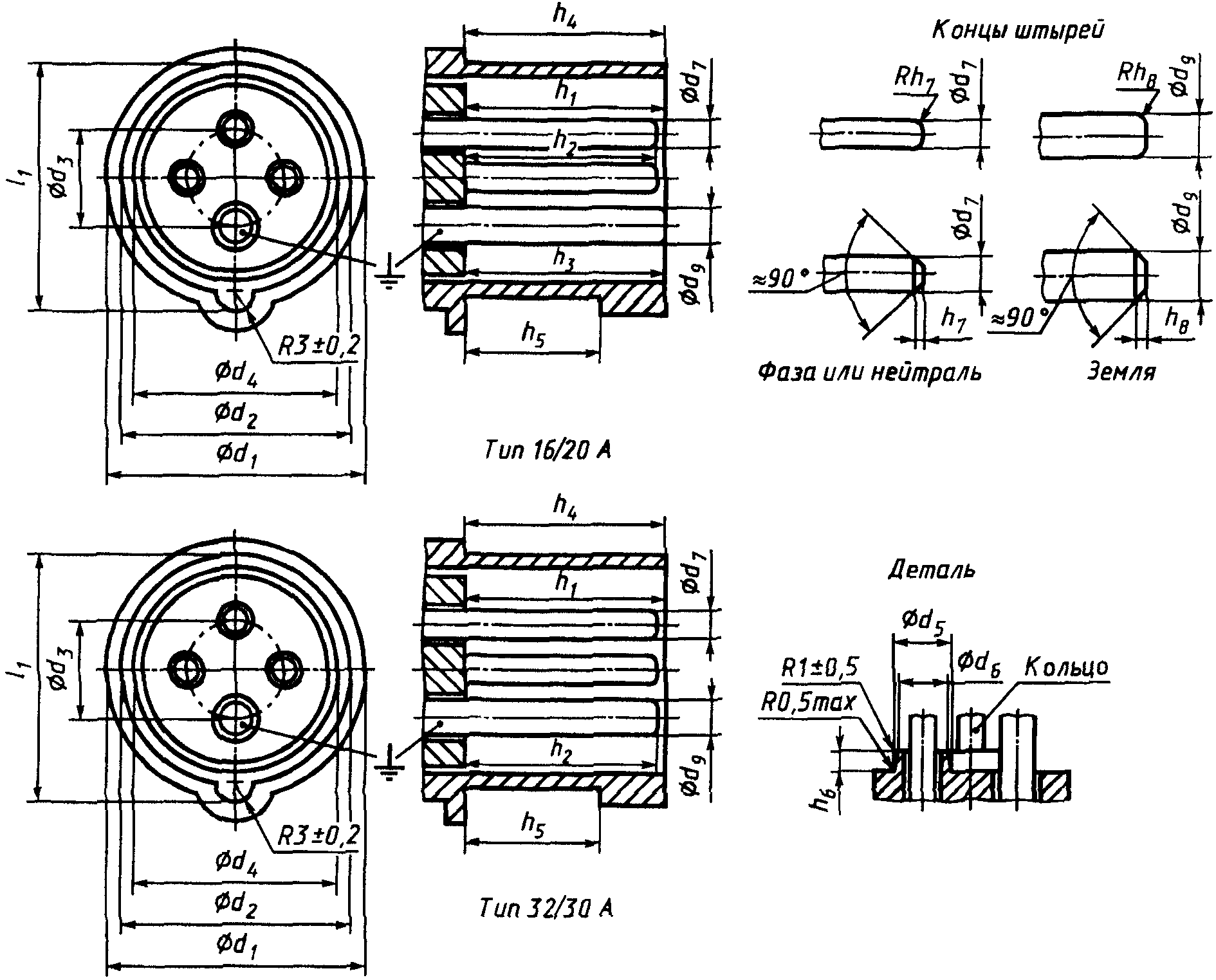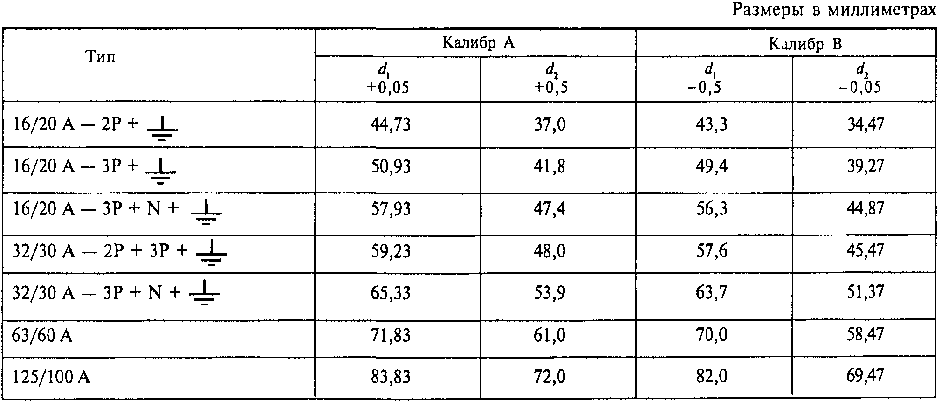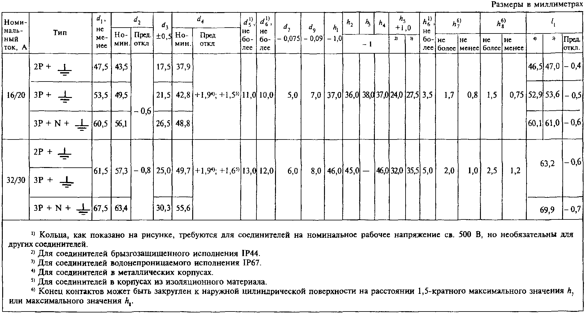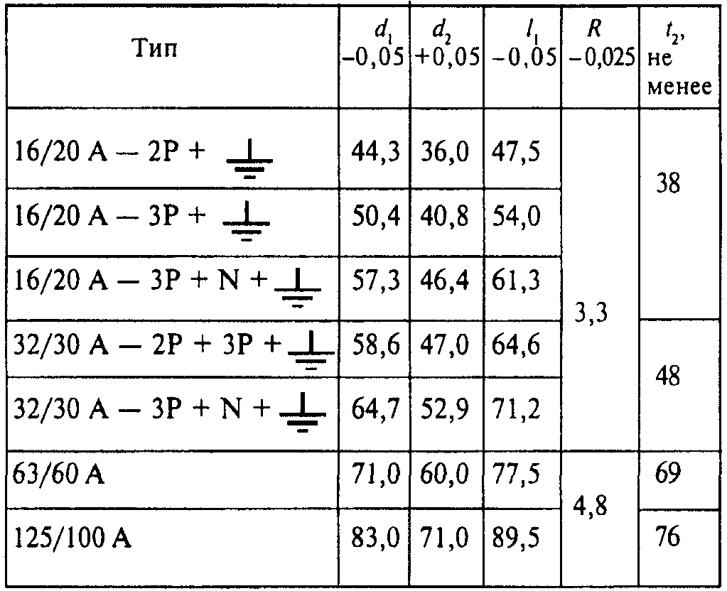 "ГОСТ Р 51323.2-99 (МЭК 60309-2-99). Государственный стандарт Российской Федерации. Вилки, штепсельные розетки и соединительные устройства промышленного назначения. Часть 2. Требования к взаимозаменяемости размеров штырей и контактных гнезд соединителей"