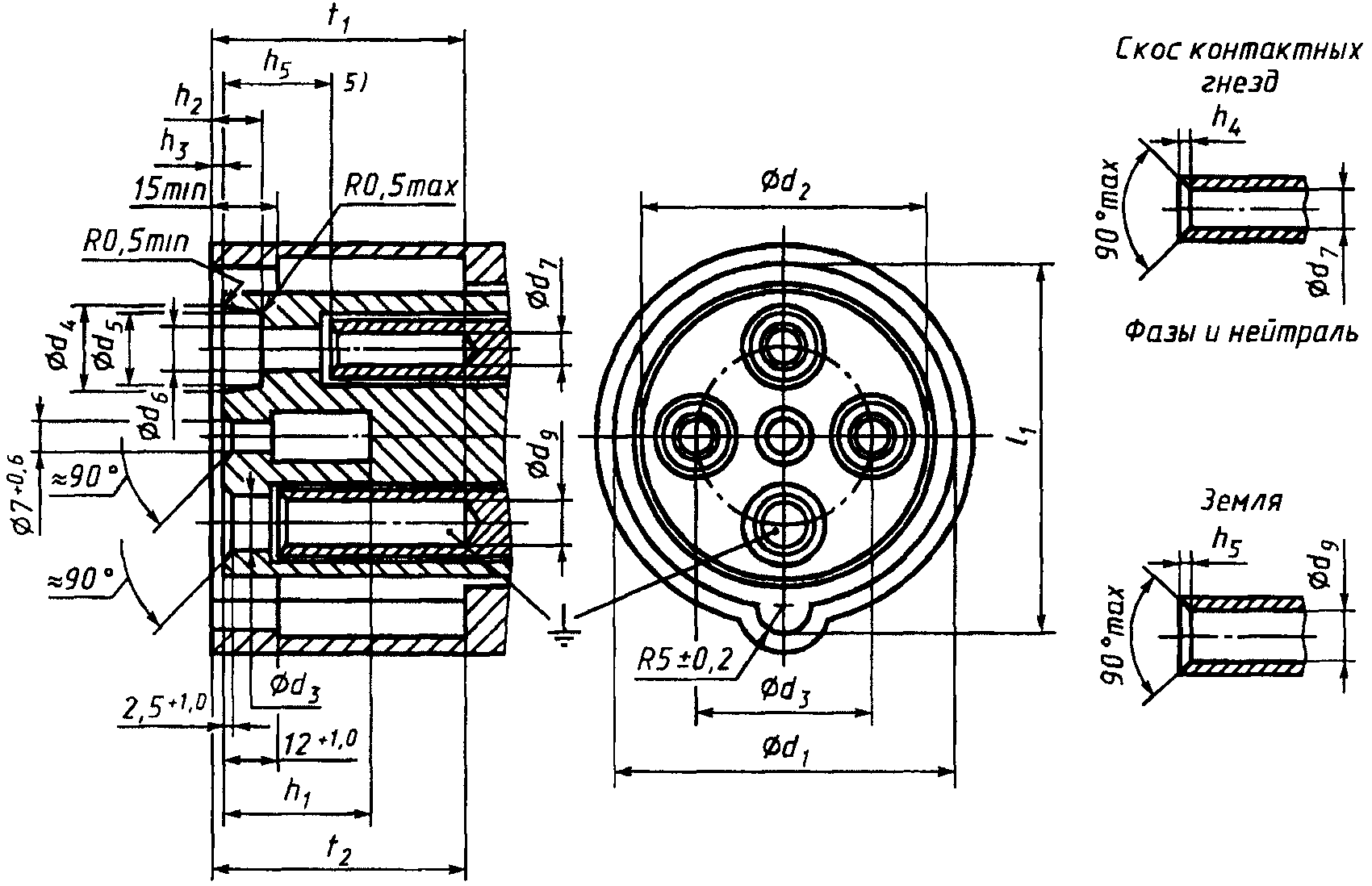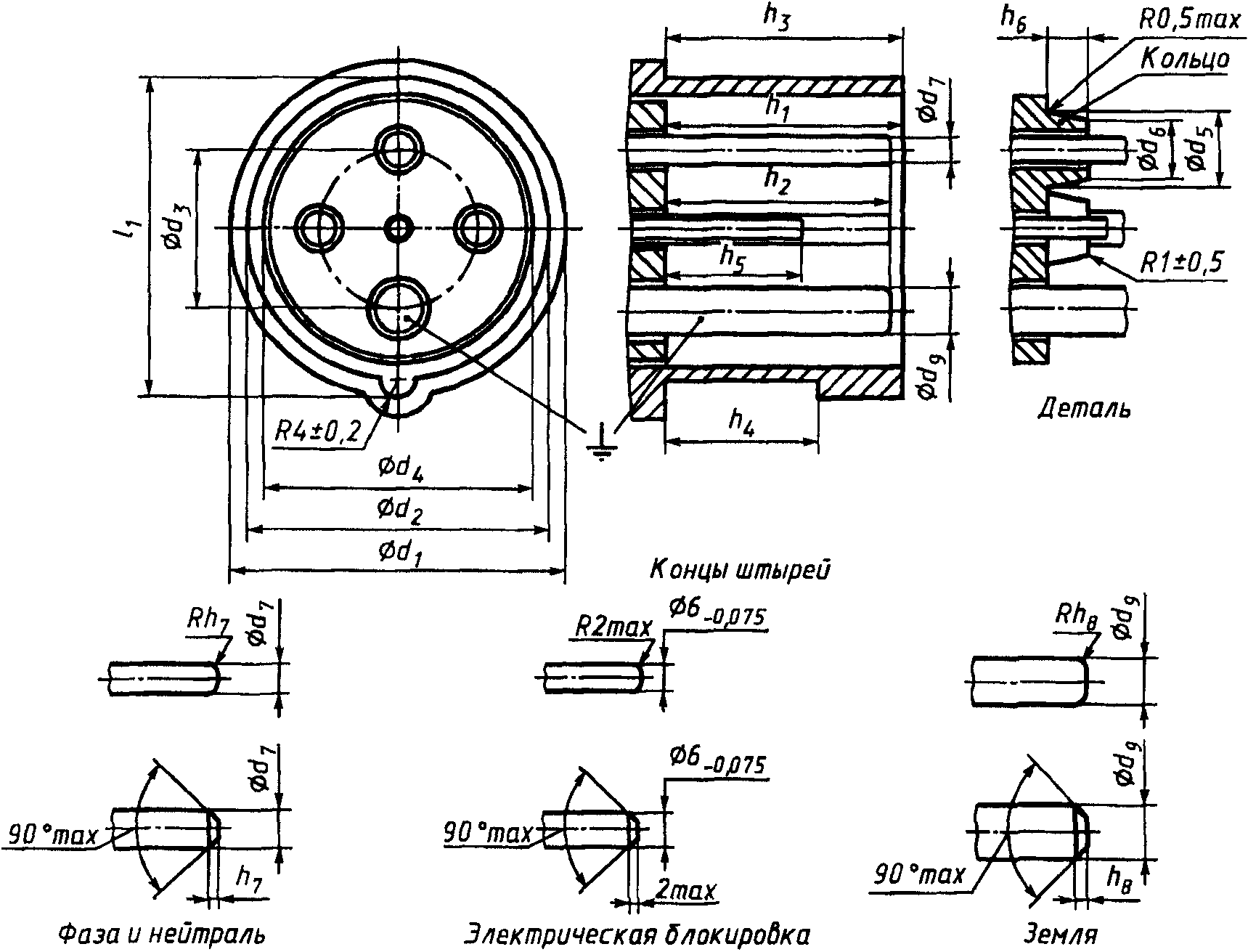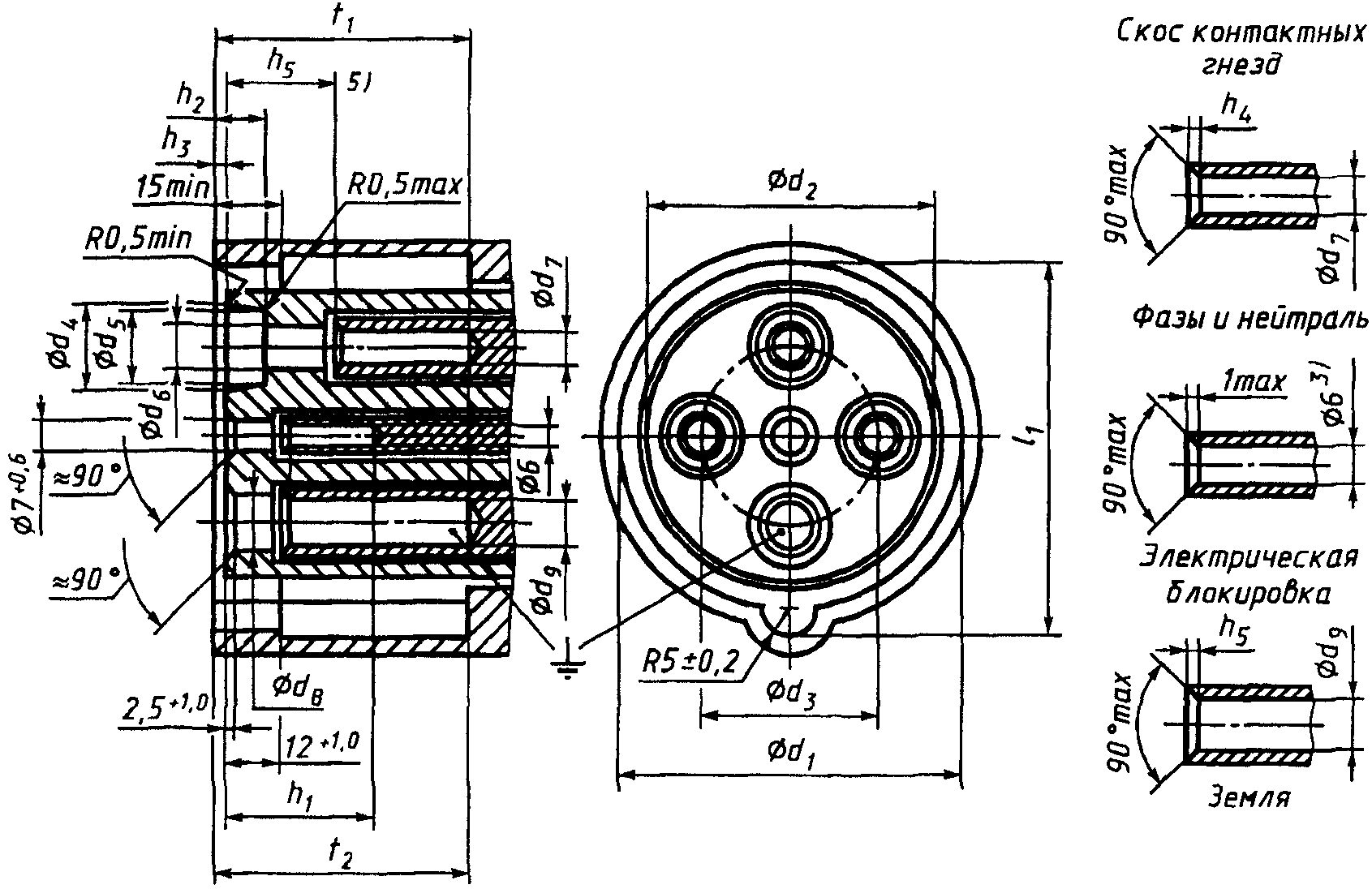 "ГОСТ Р 51323.2-99 (МЭК 60309-2-99). Государственный стандарт Российской Федерации. Вилки, штепсельные розетки и соединительные устройства промышленного назначения. Часть 2. Требования к взаимозаменяемости размеров штырей и контактных гнезд соединителей"