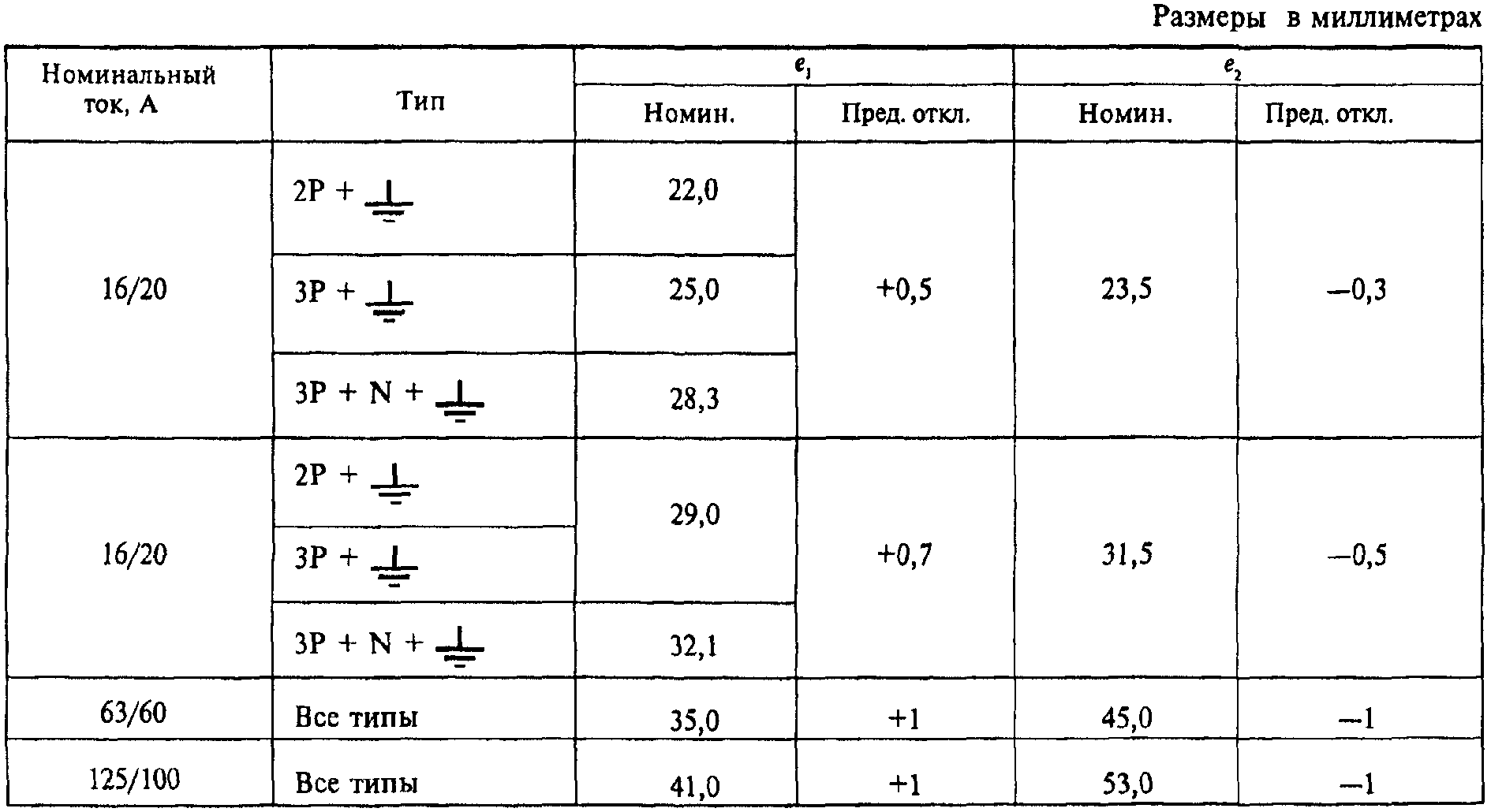 на токи 16/20, 32/30, 63/60 и 125/100 А и номинальное