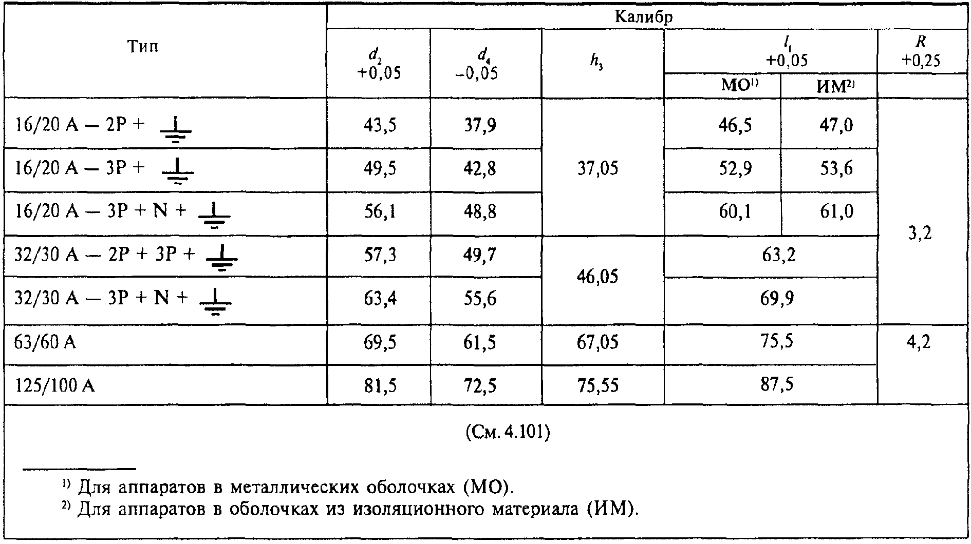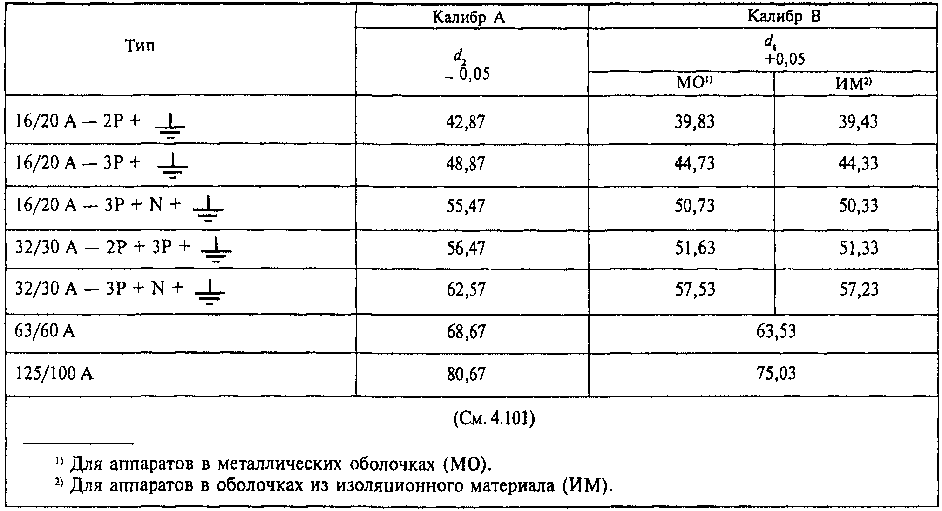 Стандартные значения номинальных токов приведены в таблице 101.