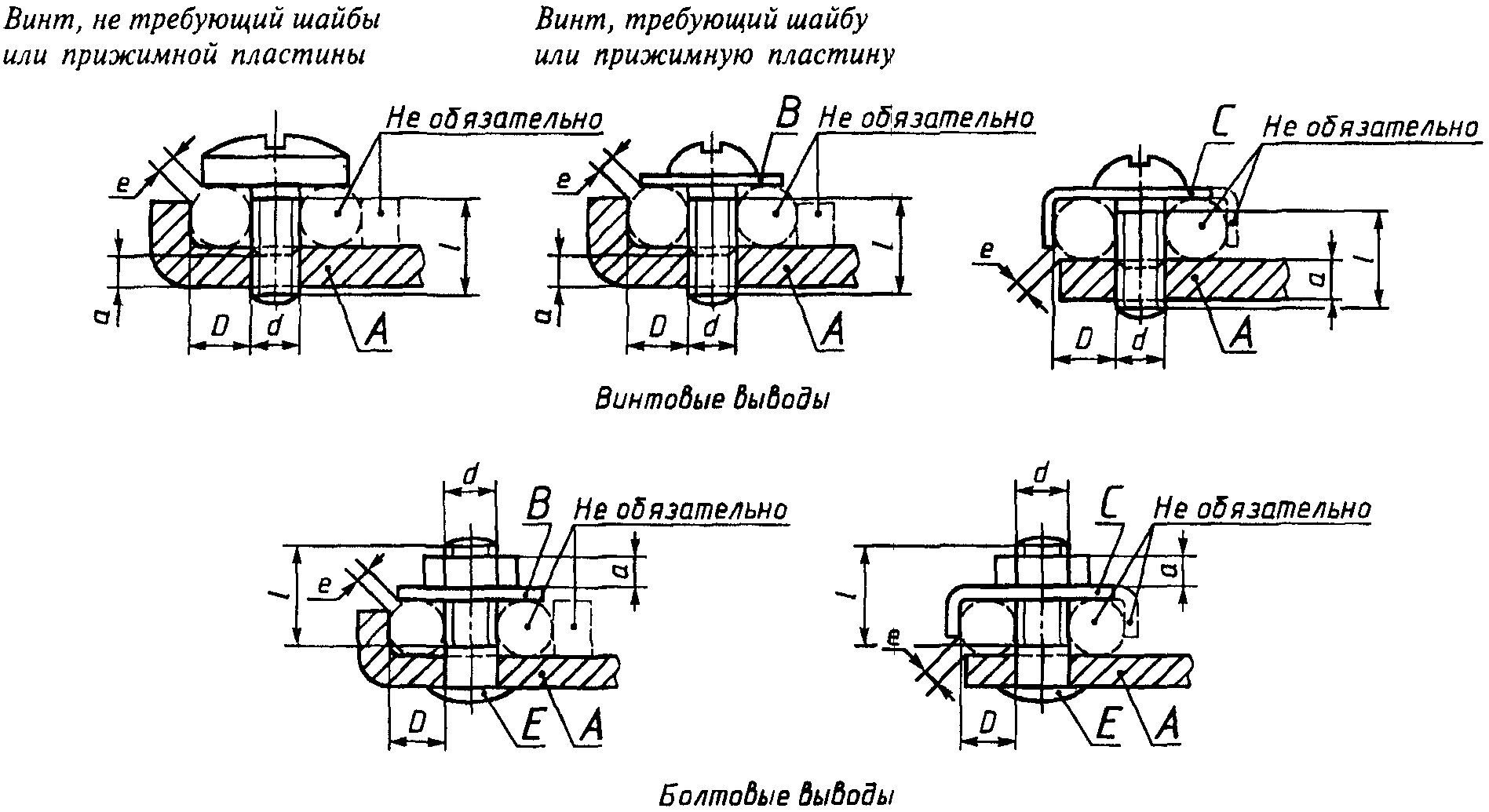 Если нерезьбовая часть винта или болта меньше толщины скобы, тогда указанное минимальное значение длины резьбы винта или болта берут от скобы, которая находится в контакте с головкой винта в винтовых зажимах или с фиксирующей частью в болтовых зажимах.