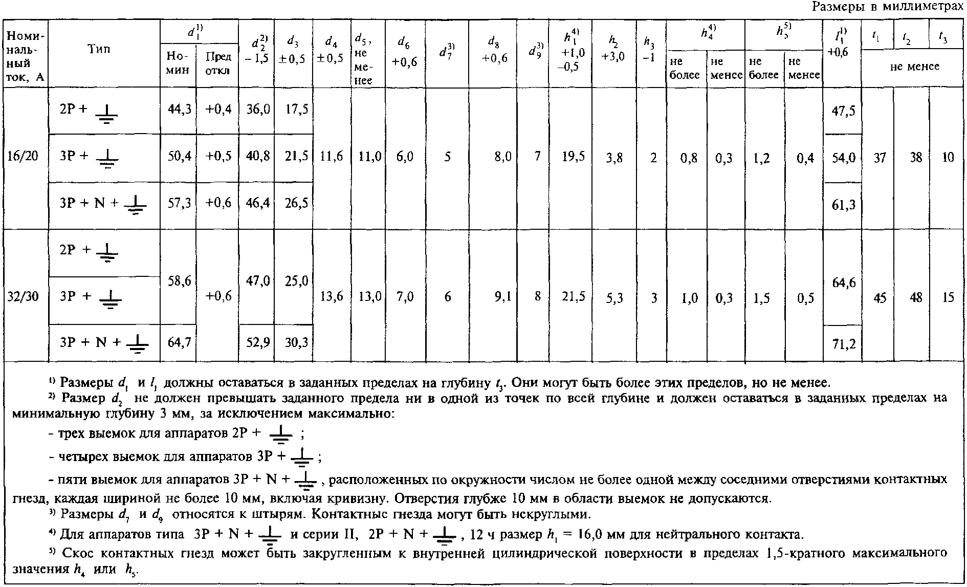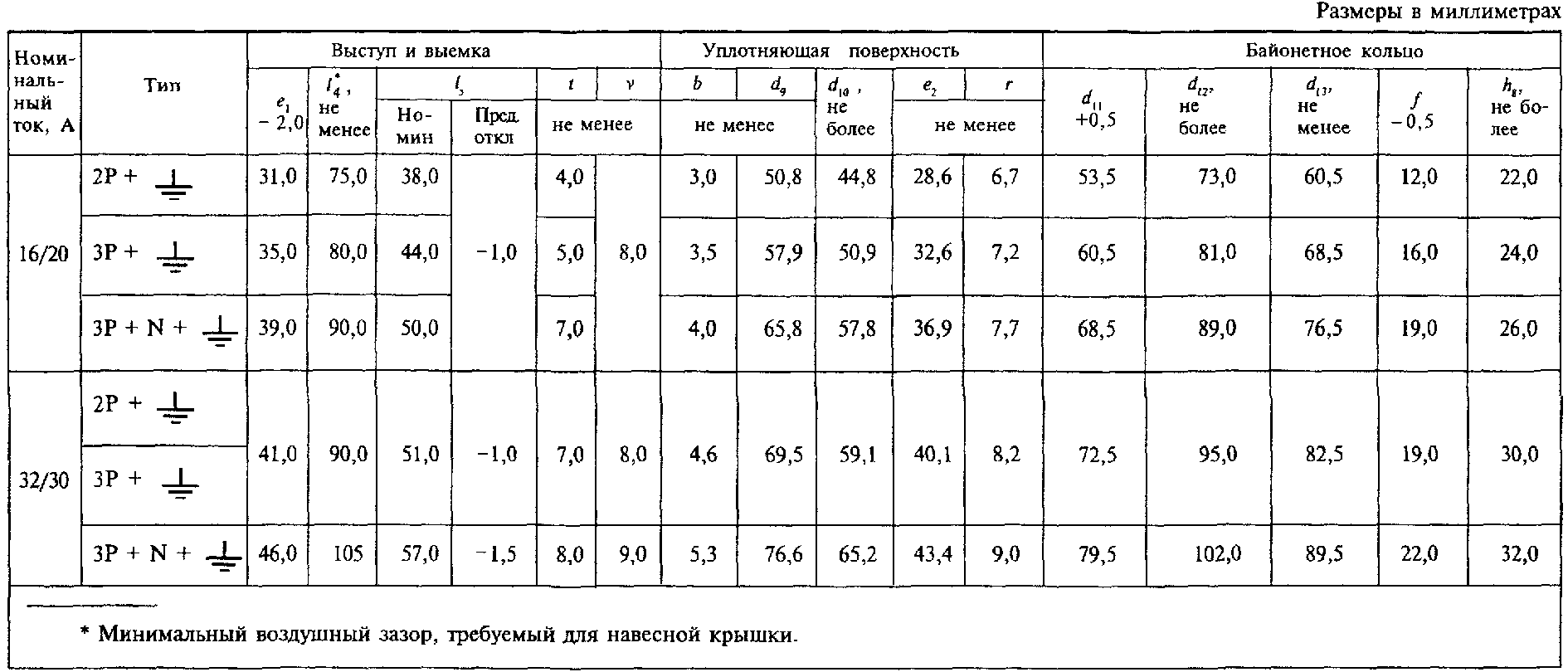 те же, что и в соответствующих штепсельных или переносных розетках.