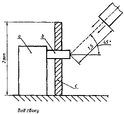 Установив заданное устройство на поворотной плите, при скорости ветра 48 км/ч в горизонтальной плоскости поворачивают это устройство и измеряют сажевое число через интервалы 15° по дуге 180°.