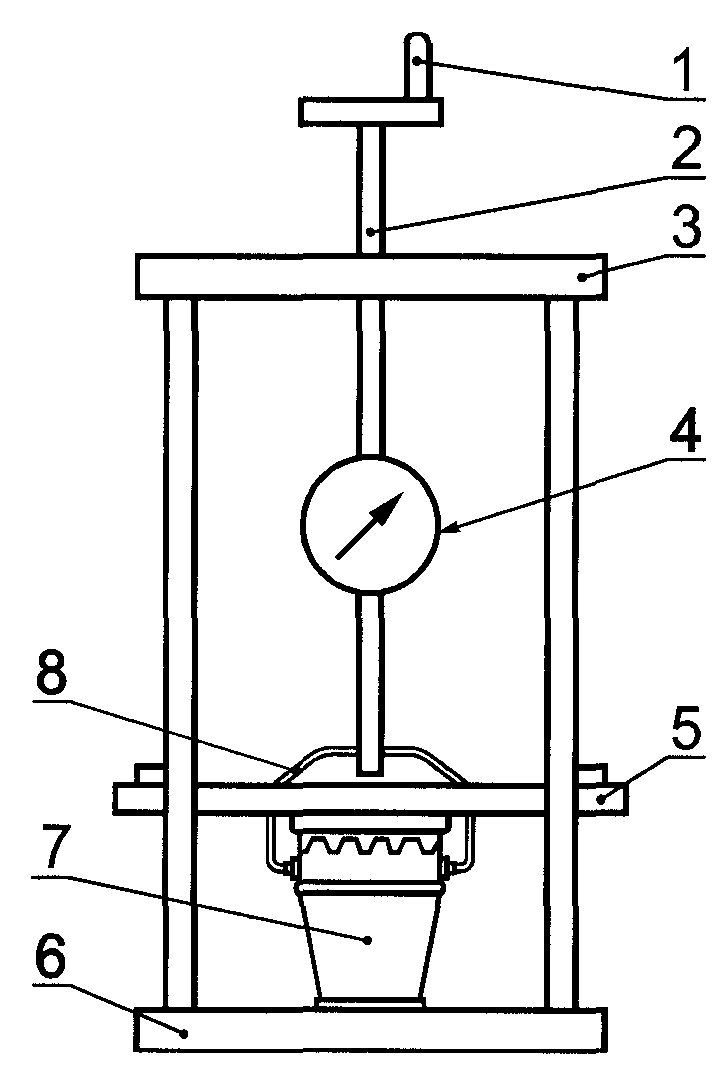 3 - неподвижный упор; 4 - серьга; 5 - датчик усилий;
