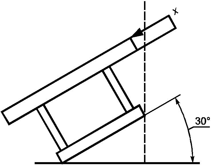 А.4.1. Для предупреждения повреждения испытательного оборудования проводят предварительные испытания с меньшими углами отклонения сиденья (например, 10°, 20° и 30°).