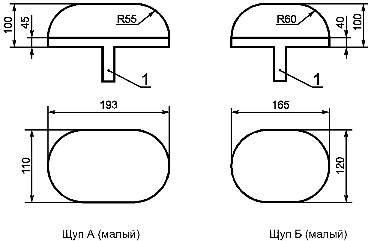 Рисунок Г.1. Щупы А и Б (малые) для определения застревания
