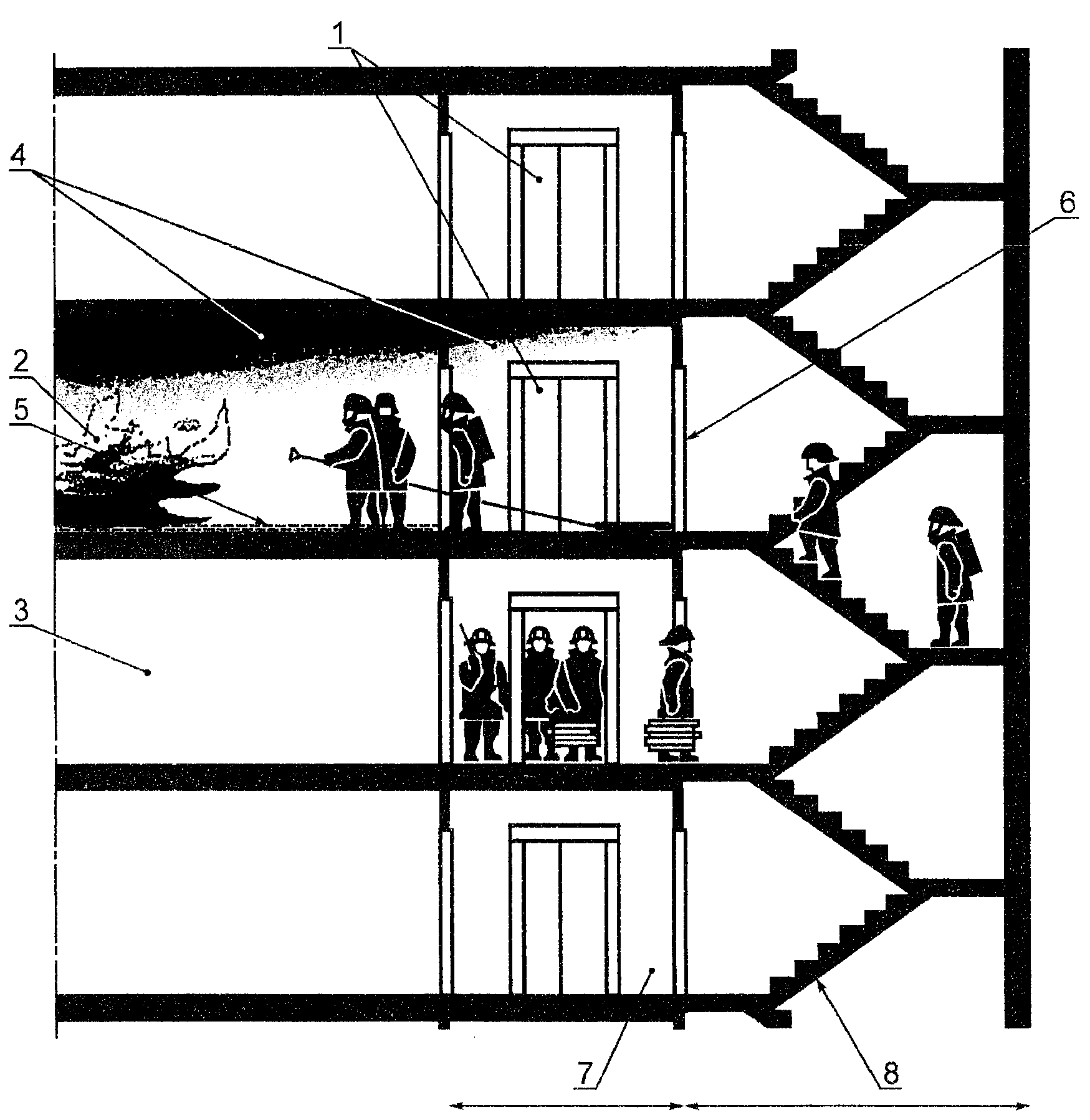 1.7. Действие стандарта ограничивается моментом проникновения пожара в пожарозащищенный холл лифта для пожарных (см. Приложение А,