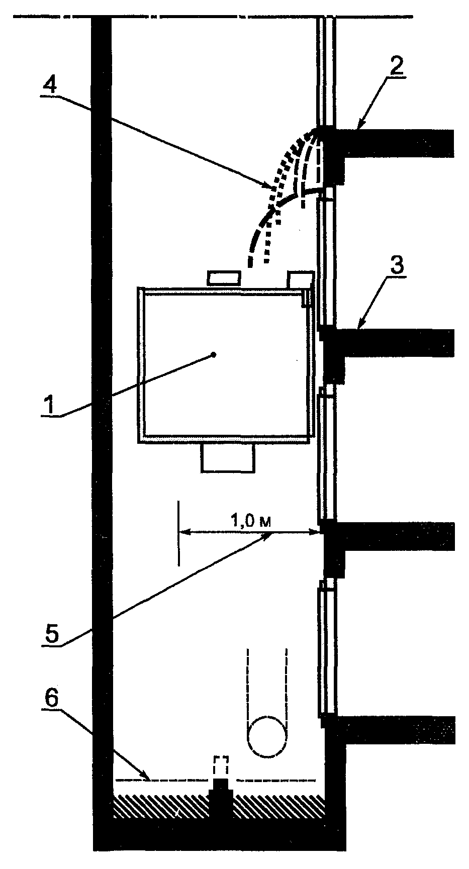 4 - потоки воды; 5 - зона, в которой лифтовое
