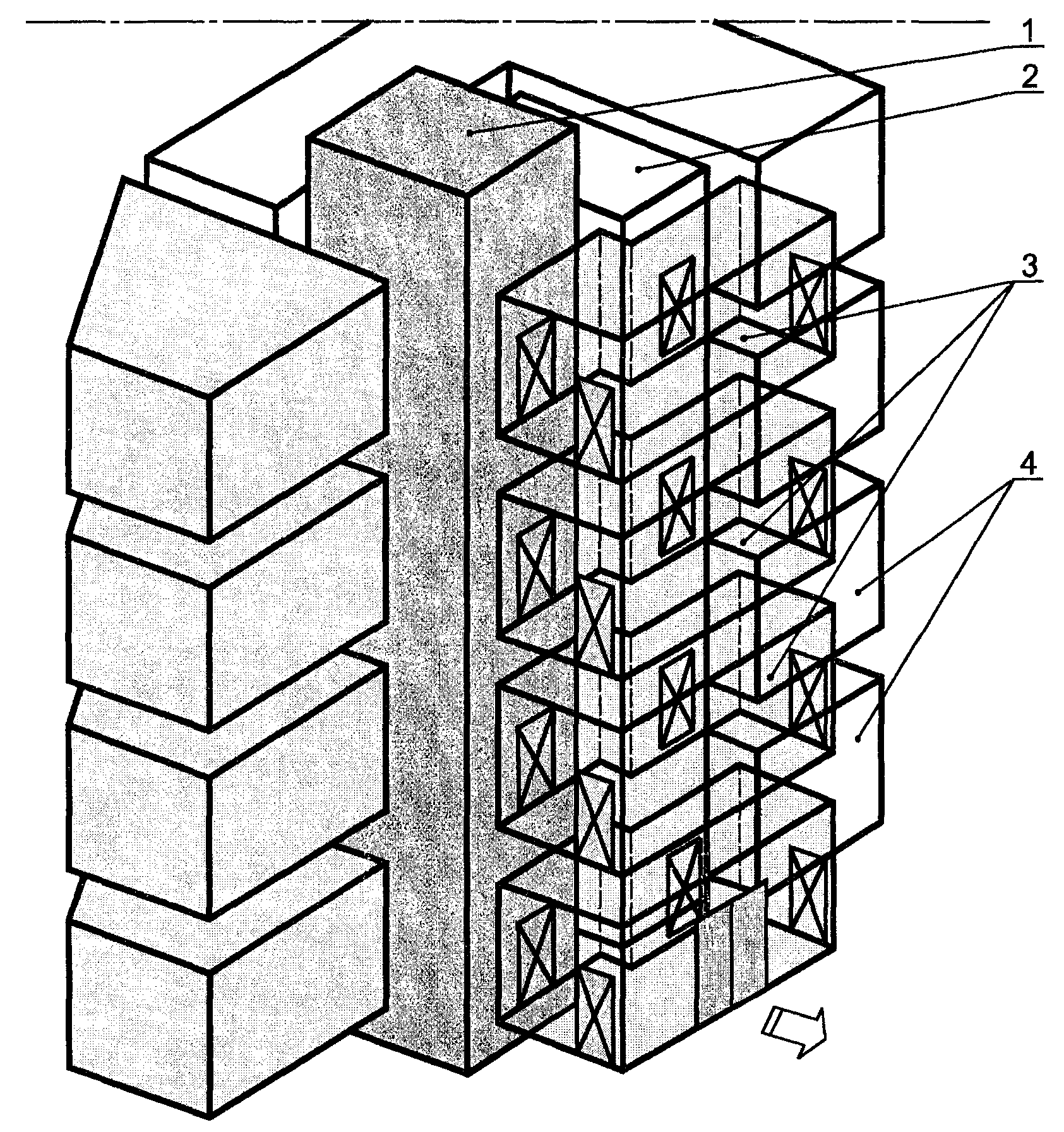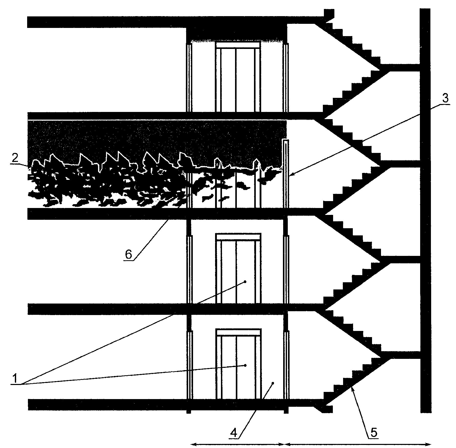 1 - лифтовая шахта, образующая отдельное пожарозащищенное