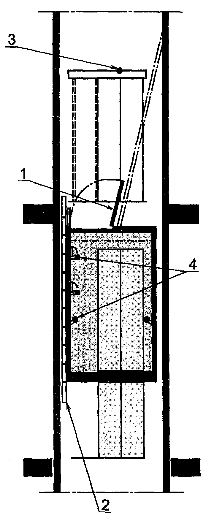 снаружи кабины лифта; 3 - замок шахтной двери;