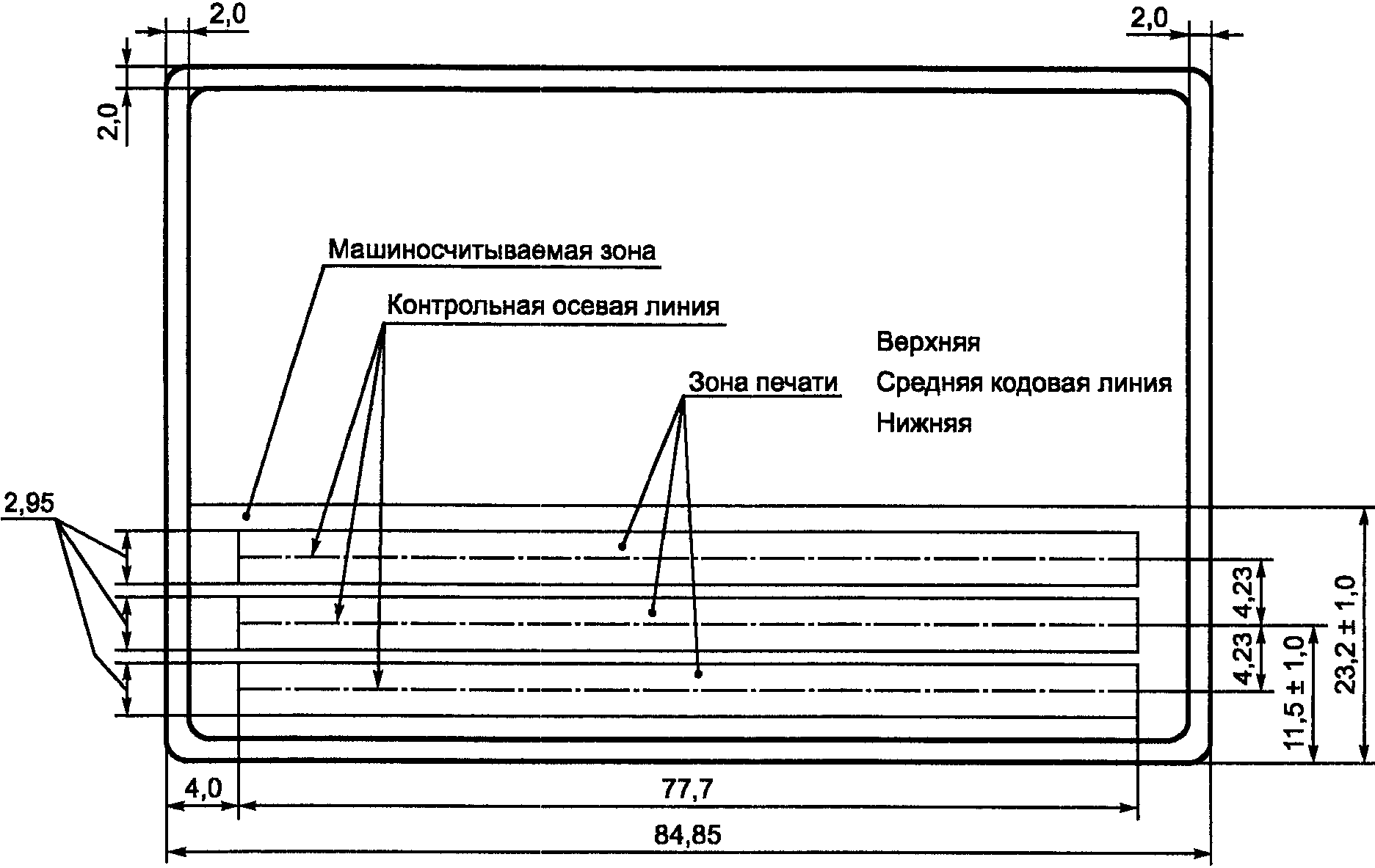 3.6. Машиносчитываемая зона; МСЗ: установленное на ПД-1 и ПД-2 пространство, содержащее обязательные и дополнительные данные, подвергаемые машинному считыванию.