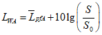 , дБА, в контрольной точке вычисляют по формуле