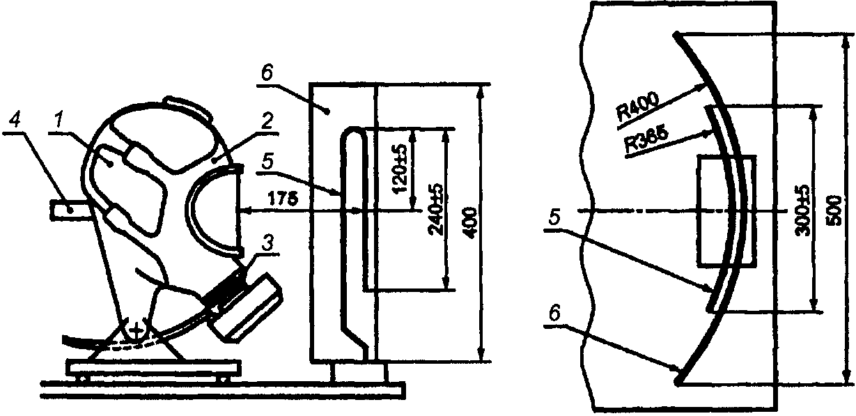 Устанавливают на подставку разделительный экран. В границах определенной зоны теплового потока ставят муляж головы человека с надетой лицевой частью.