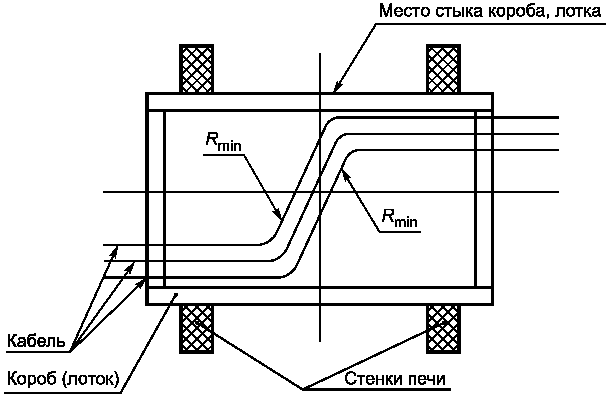 4.3.1. Образец представляет собой кабельную линию в проектном исполнении, которую устанавливают в испытательной печи в соответствии с технической документацией. При использовании коробов, лотков или труб образец устанавливают в испытательную печь горизонтально таким образом, чтобы в испытательной печи находилось максимальное количество стыков и элементов вентиляционных систем (при их наличии) в соответствии с технической документацией. Места прохода образца через стены печи заделывают в соответствии с технической документацией.