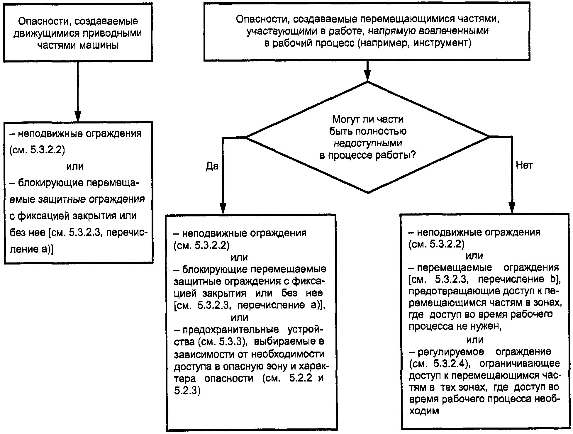 разделе 5 описаны средства защиты и дополнительные защитные меры, позволяющие снижать степень риска в случае, если меры по разработке безопасных конструкций самой машины оказываются недостаточными (см. описание 3-шагового метода в ИСО 12100-1, раздел 5).