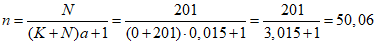После округления n = 51.