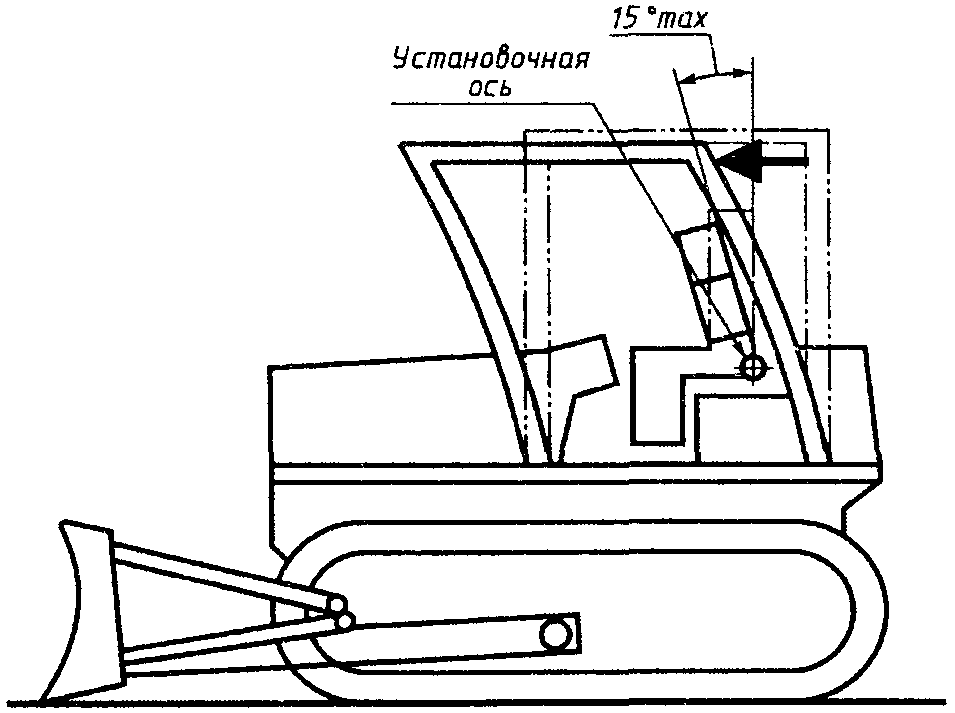 ГОСТ Р ИСО 3164, для предотвращения проникновения элементов ROPS (или, в случае бокового нагружения, - LSGP). Поворот DLV вперед не должен превышать угол 15°. Если мешают какие-либо элементы машины или средства управления, то данный угол должен быть уменьшен (рисунок 15).