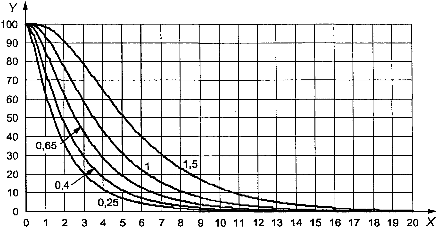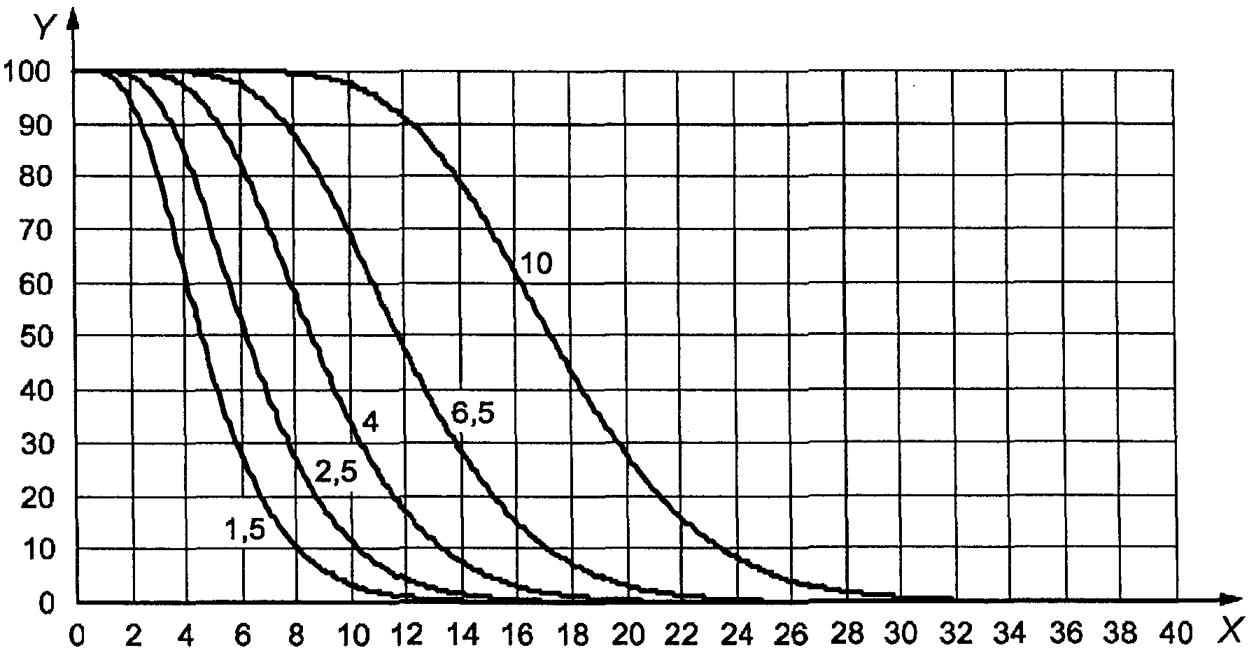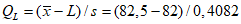 таблице C.1 (Приложение C) с кодом объема выборки M и AQL 1,0% объем выборки n = 25 и контрольный норматив k = 1,941. Доля несоответствующих единиц продукции рассматриваемого процесса p = 0,025. По таблицам нормированного нормального распределения
