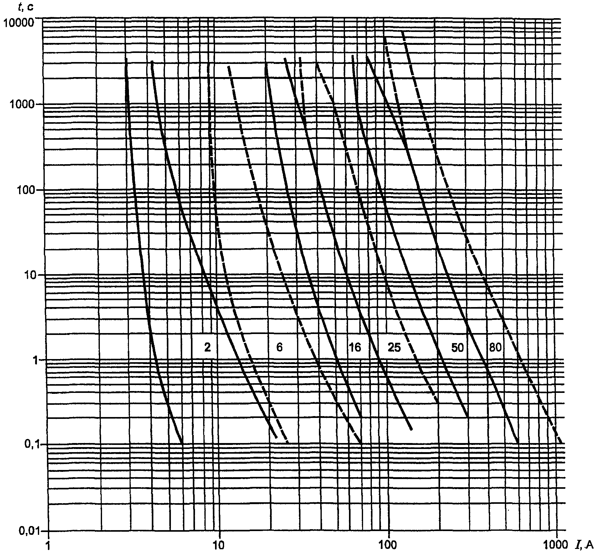 ХАРАКТЕРИСТИЧЕСКИЕ КРИВЫЕ ДЛЯ ПЛАВКОГО ПРЕДОХРАНИТЕЛЯ