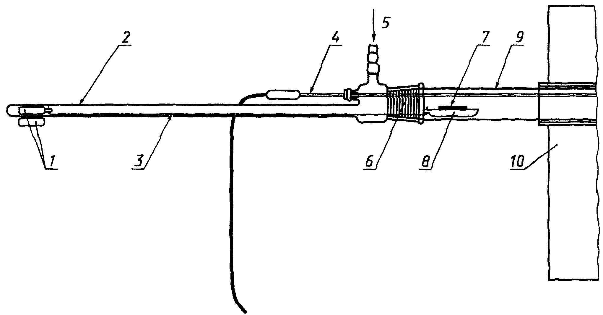 8 - устройство для ввода лодочки с образцом; 9 - трубка