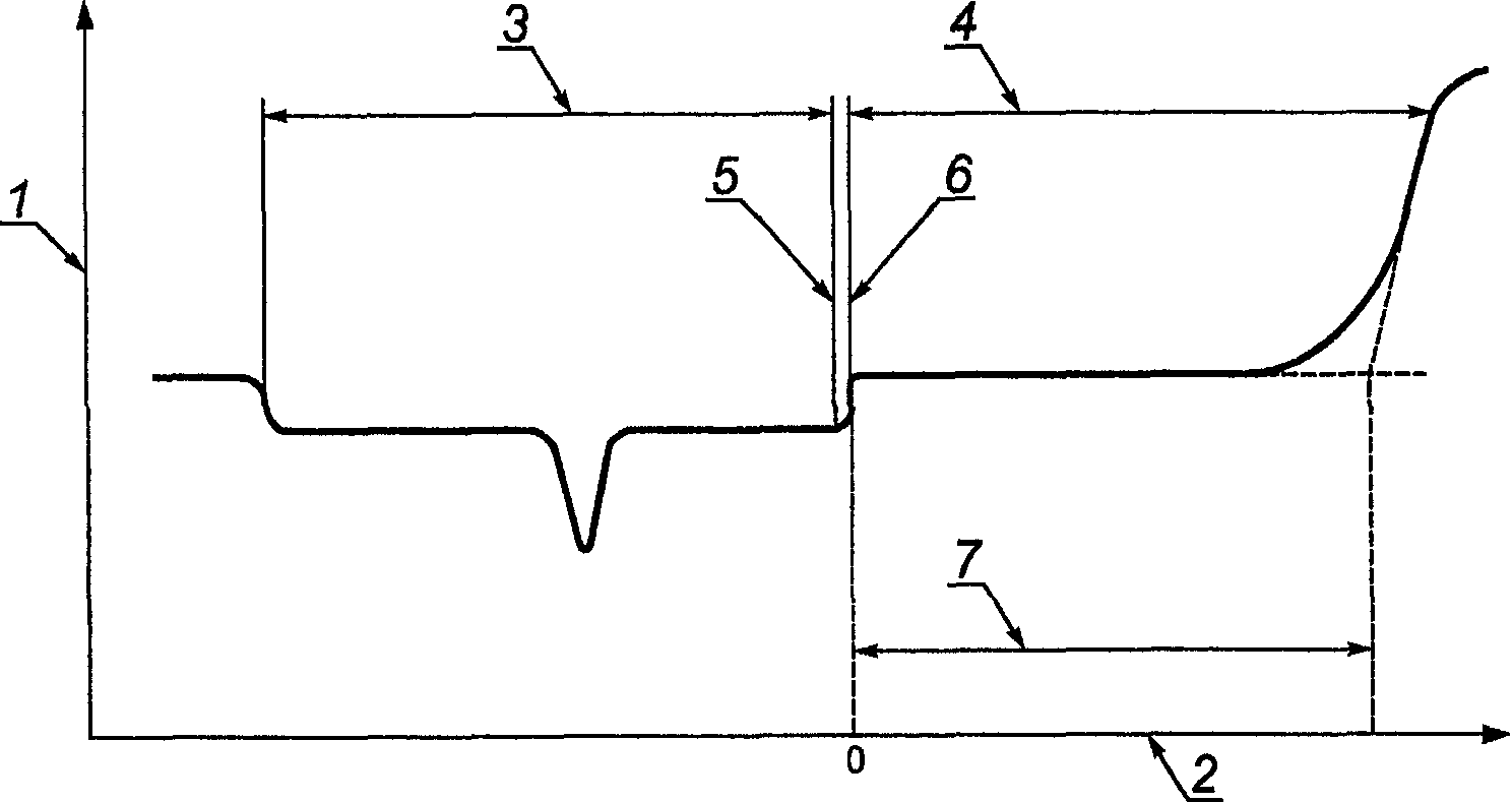 B.7.2. Временем окислительной индукции (ВОИ) является интервал, измеренный от нулевой отметки времени до небольшого временного интервала (не превышающего 1 мин) начала окислительной изотермы.