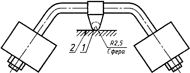 Соответствие проверяют путем вдавливания стального шарика диаметром 5 мм в детали с помощью прибора, приведенного на рисунке 4.