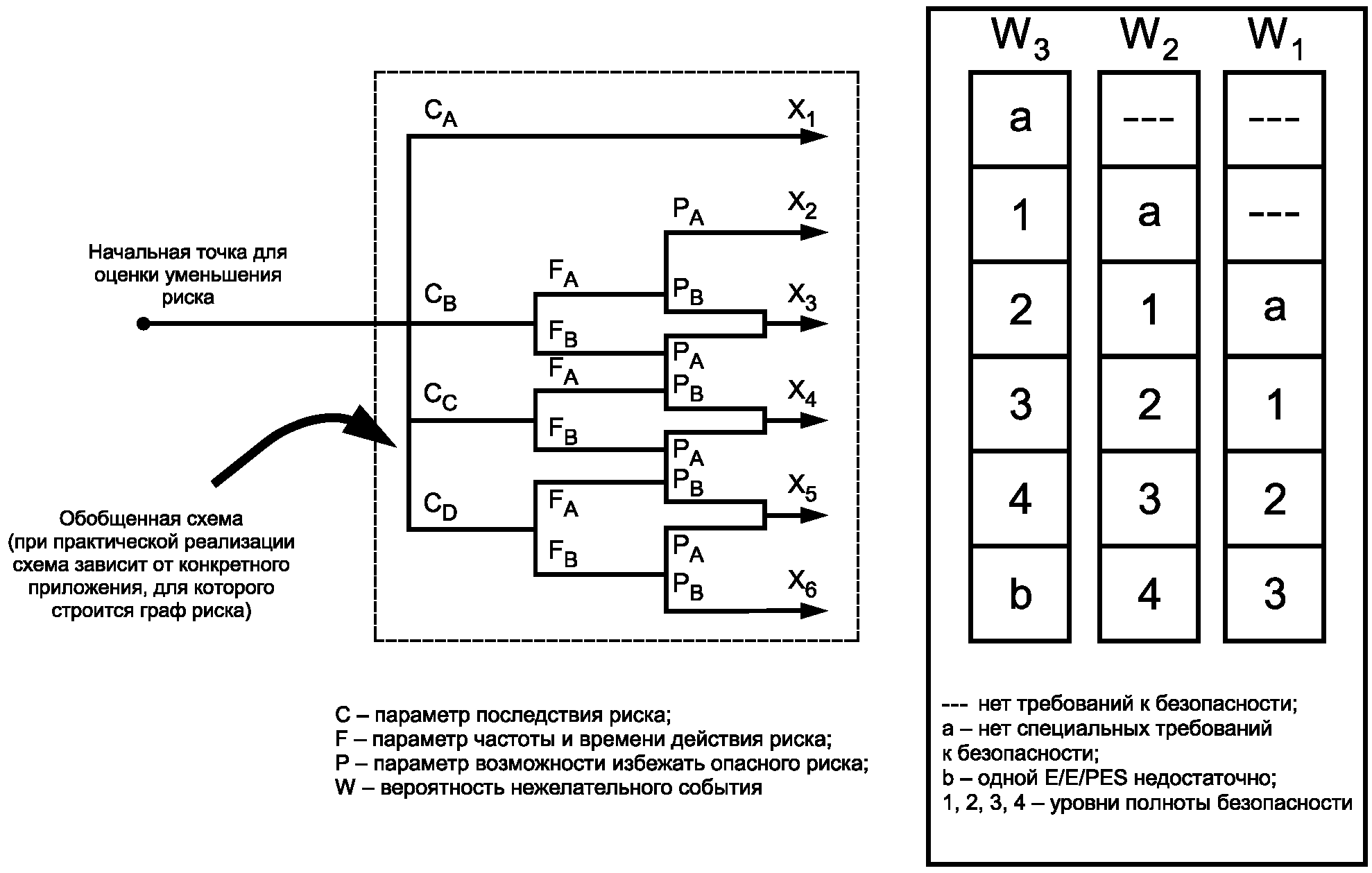 В схеме, описываемой в настоящем приложении, предполагается, что каждая система, связанная с безопасностью, и каждое внешнее средство уменьшения риска являются независимыми.