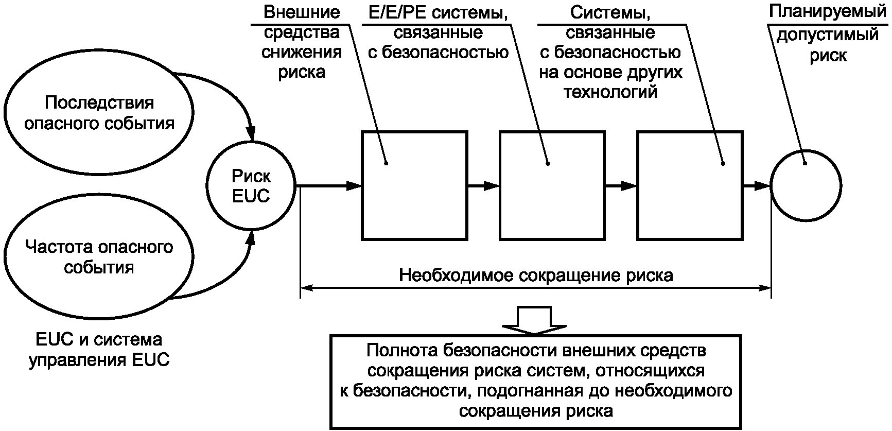 - системы, связанные с безопасностью (E/E/PE и основанные на других технологиях), а также внешние средства уменьшения риска являются независимыми;