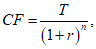 Из-за инфляции, колебаний цен рекомендуется проводить дисконтирование, т.е. определять суммарные затраты на проект (CF), руб., путем приведения всех затрат к определенному моменту времени:
