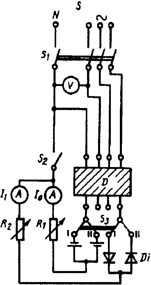 - амперметр переменного тока; D - испытуемое УЗО-Д;