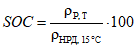 3.1.20 состояние заряда; SOC (state of charge, SOC): Отношение фактической плотности водорода в системе хранения компримированного водорода к его плотности при номинальном рабочем давлении и стандартной температуре 15 °C.